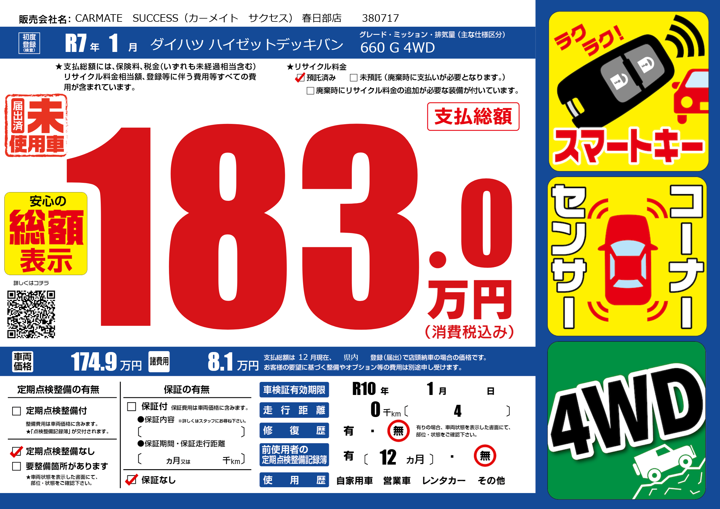 | 走行キロ | - | 初年度登録 | R7年1月 |