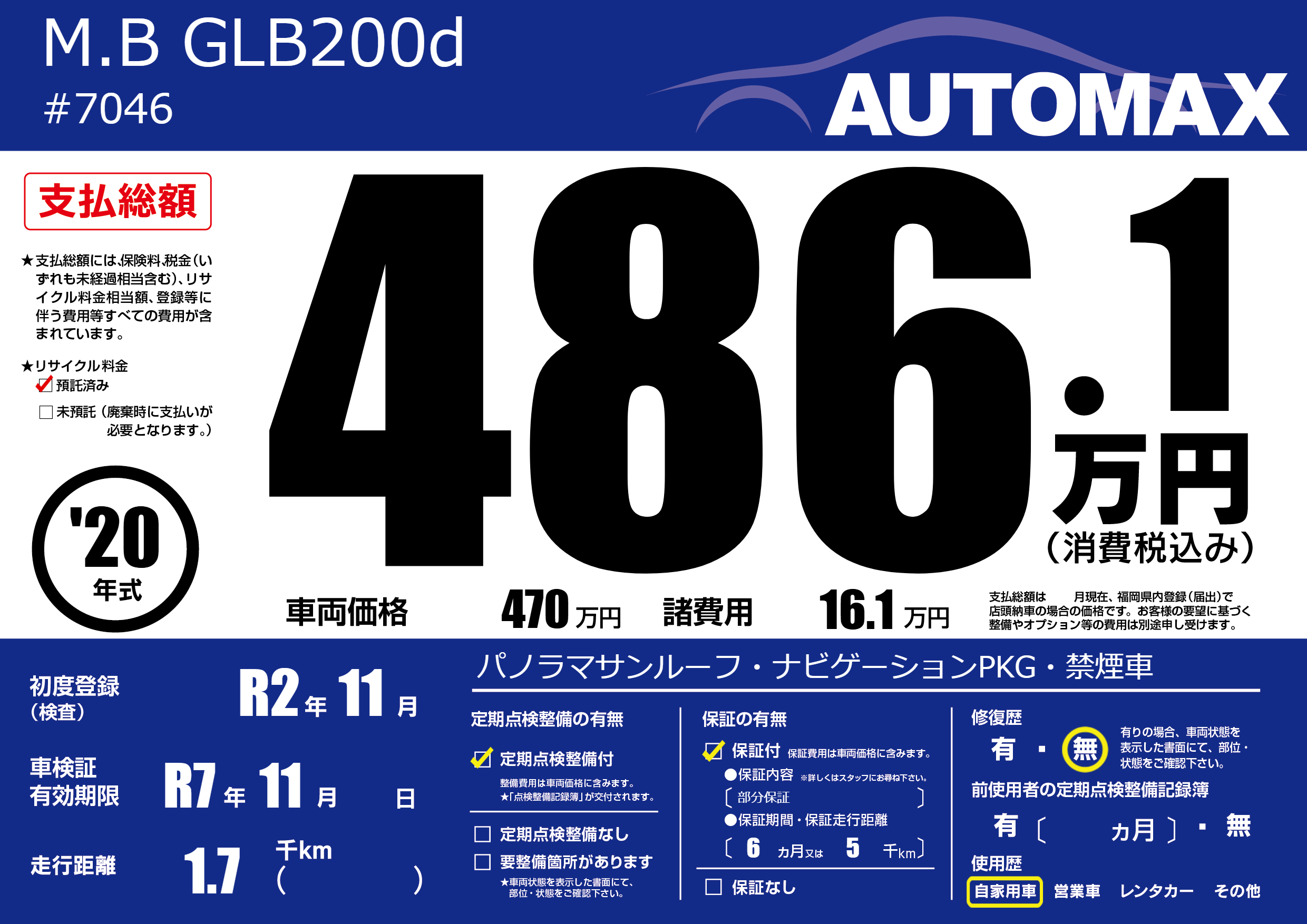 | 車検制限 | R7年 11月 - 日 | ||