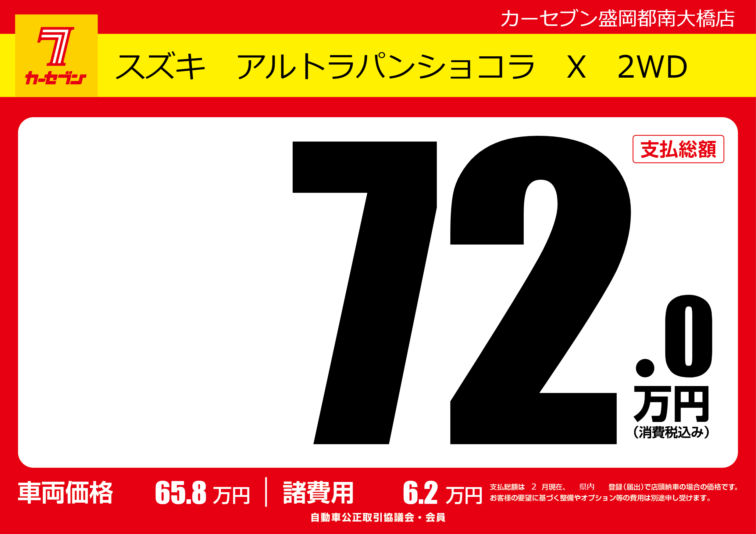 | 車名 | スズキ アルトラパンショコラ X 2WD | グレード ミッション 排気量 |