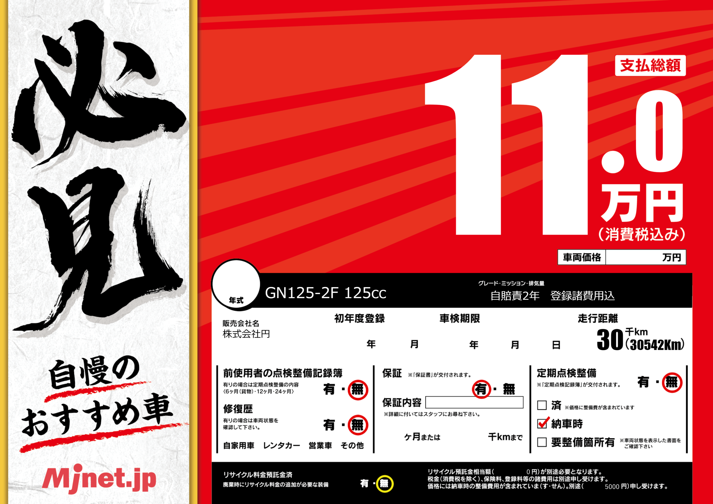 | 車名 | GN125-2F 125cc | グレード ミッション 排気量 |