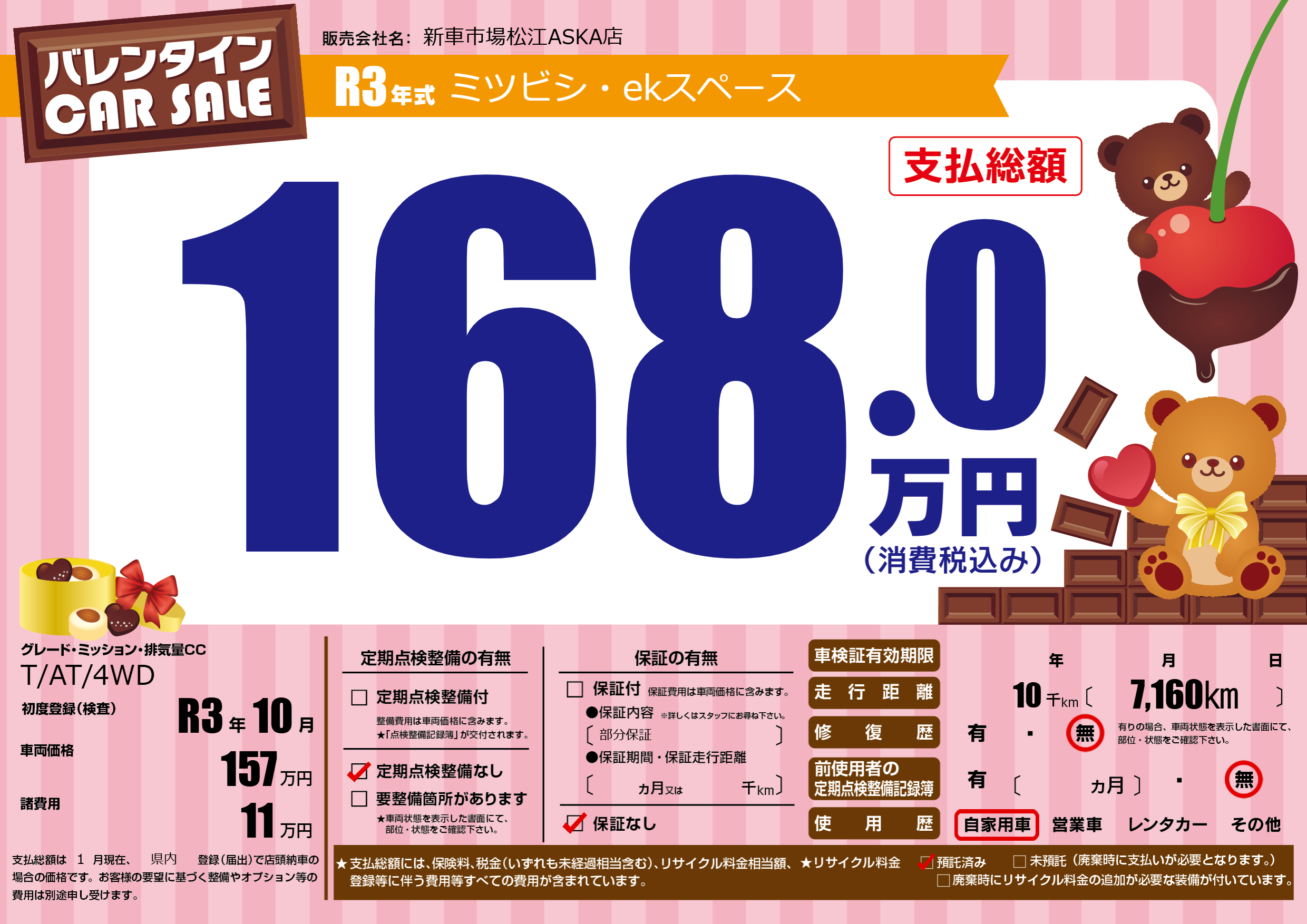 | 走行キロ | 1万km | 初年度登録 | R3年10月 |