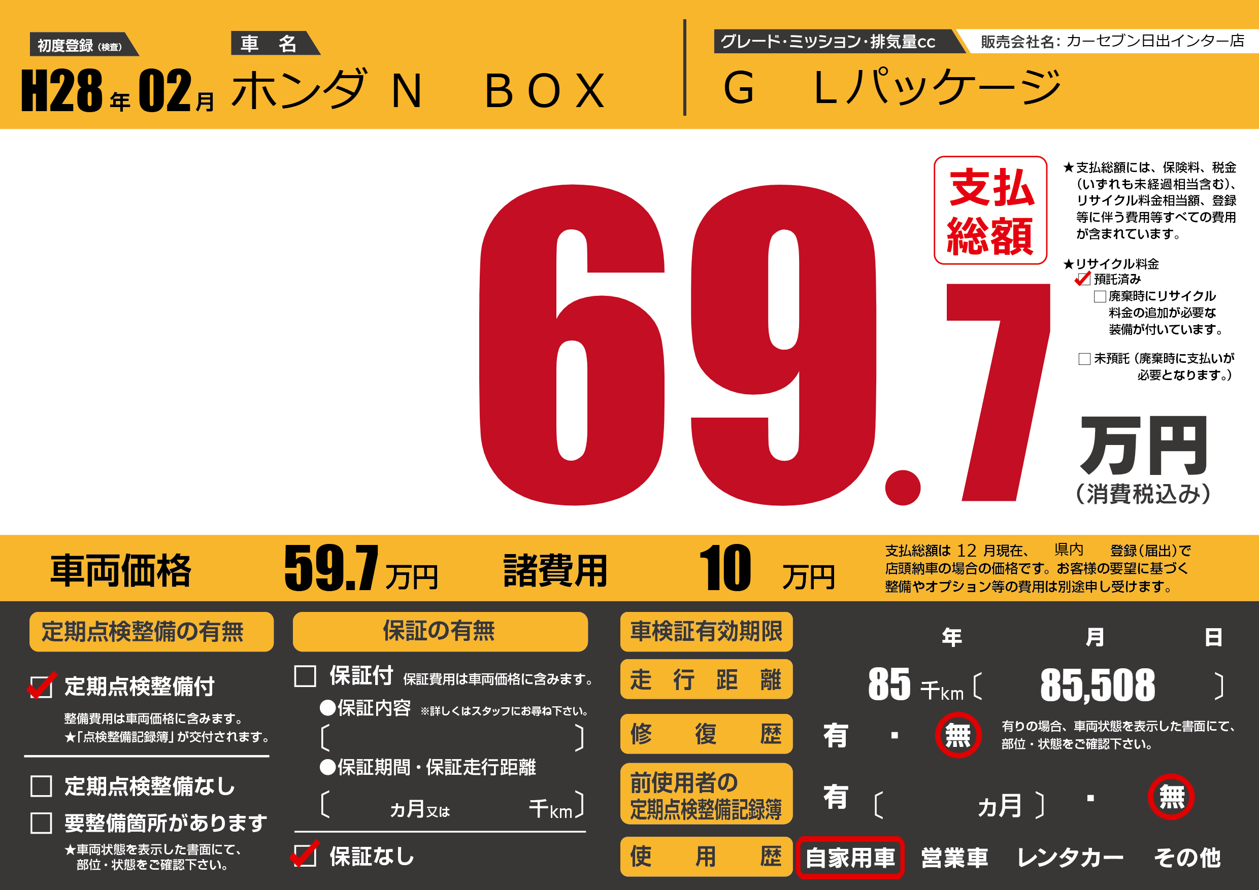 | 定期点検整備 | 定期点検整備あり | ||