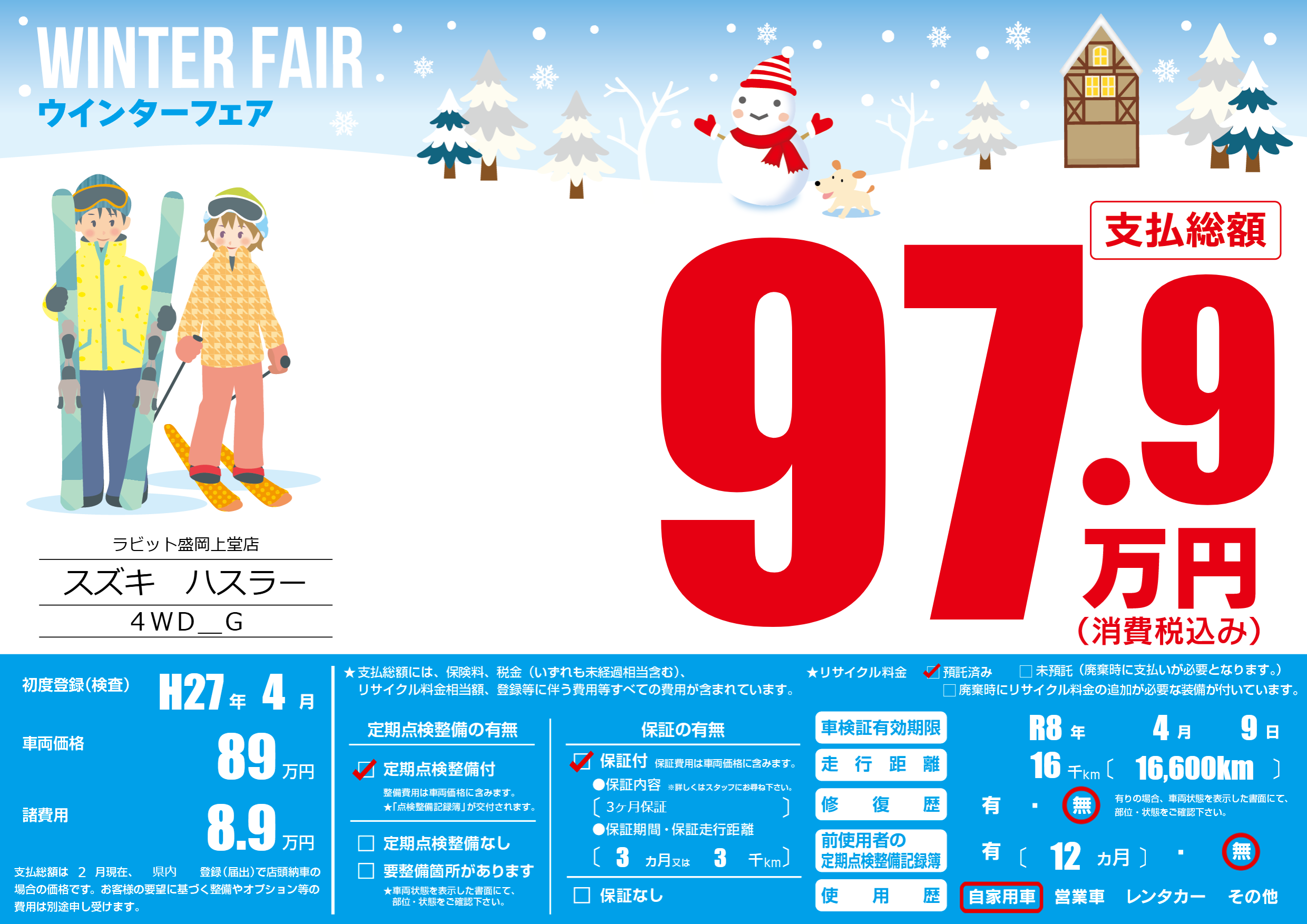 | 走行キロ | 1.6万km | 初年度登録 | H27年4月 |