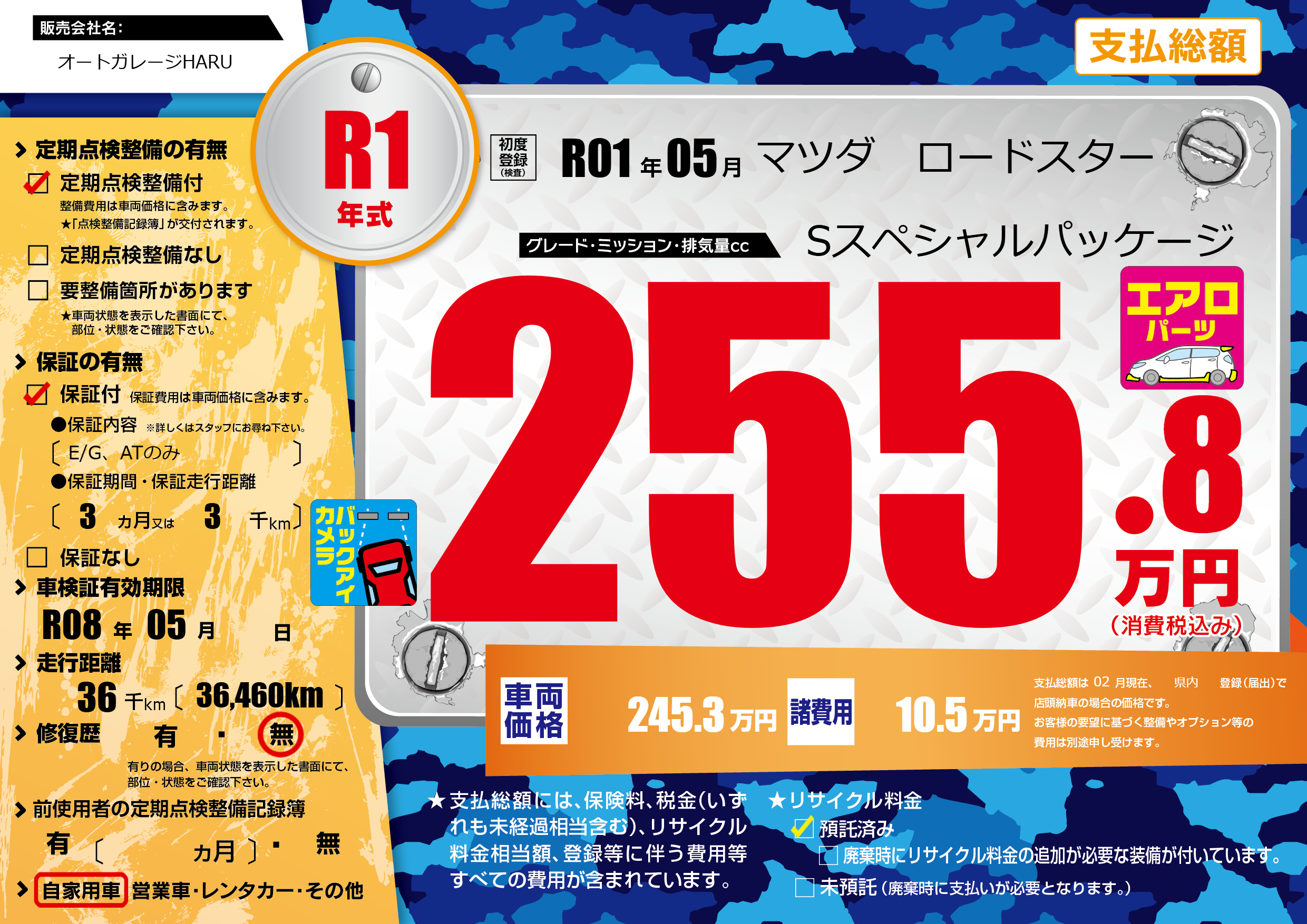 | 車検制限 | R08年 05月 - 日 | ||