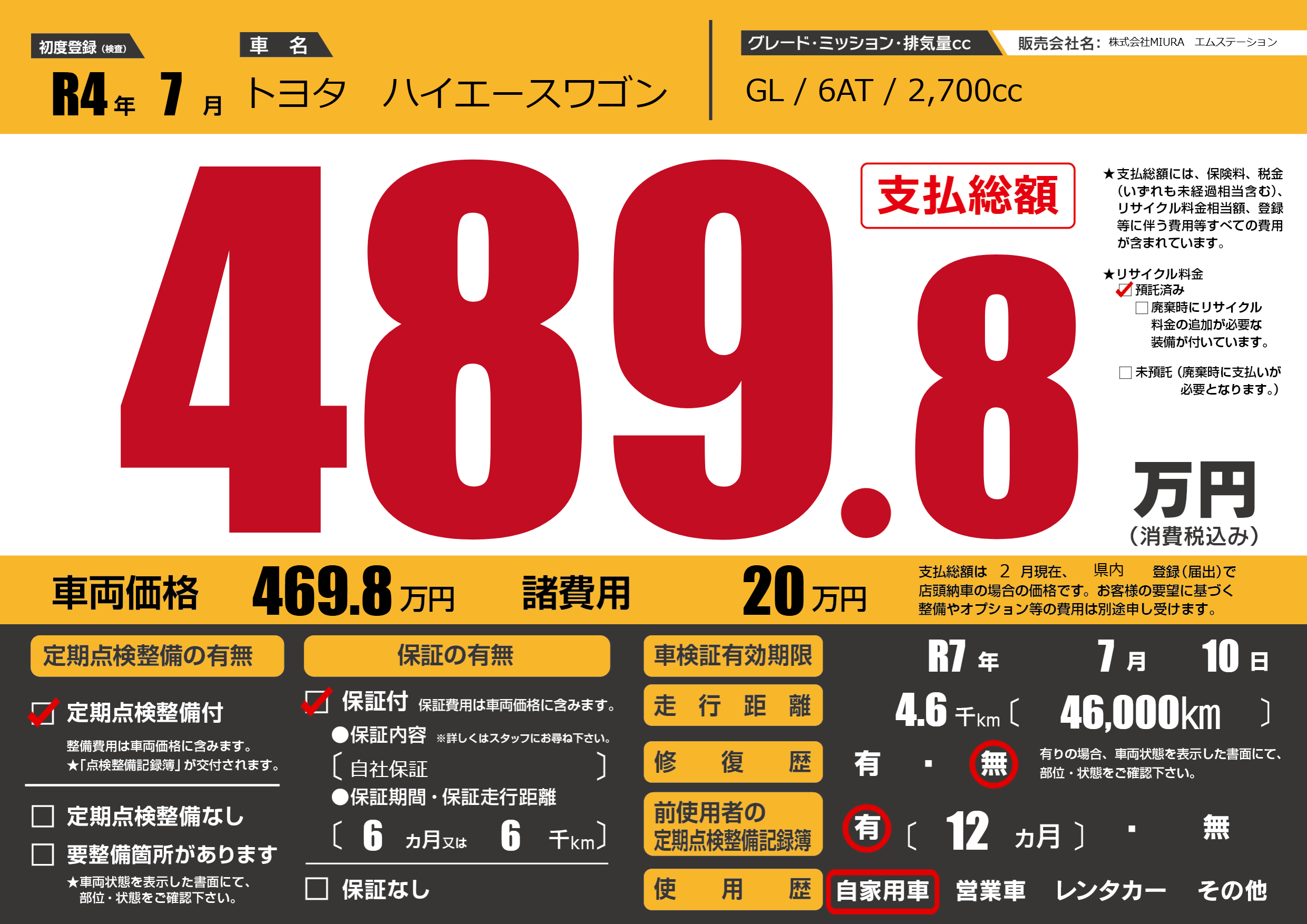 保証付き 保証内容(自社保証) 6ヶ月または6千km |