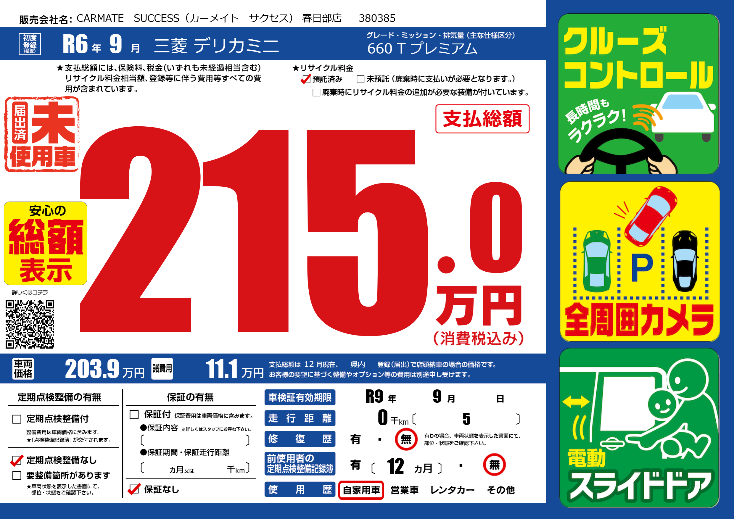 | 走行キロ | - | 初年度登録 | R6年9月 |