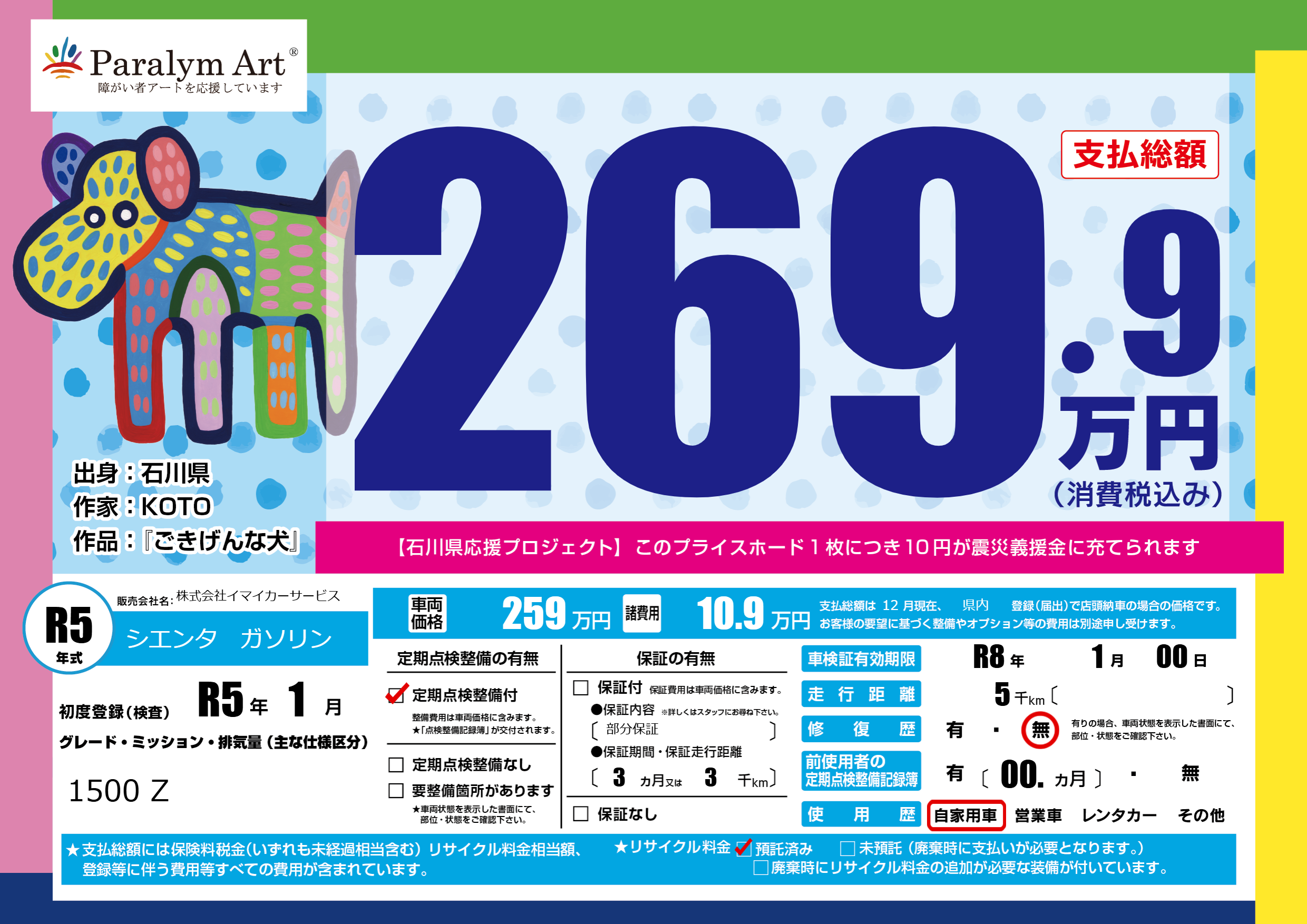 | 走行キロ | 0.5万km | 初年度登録 | R5年1月 |