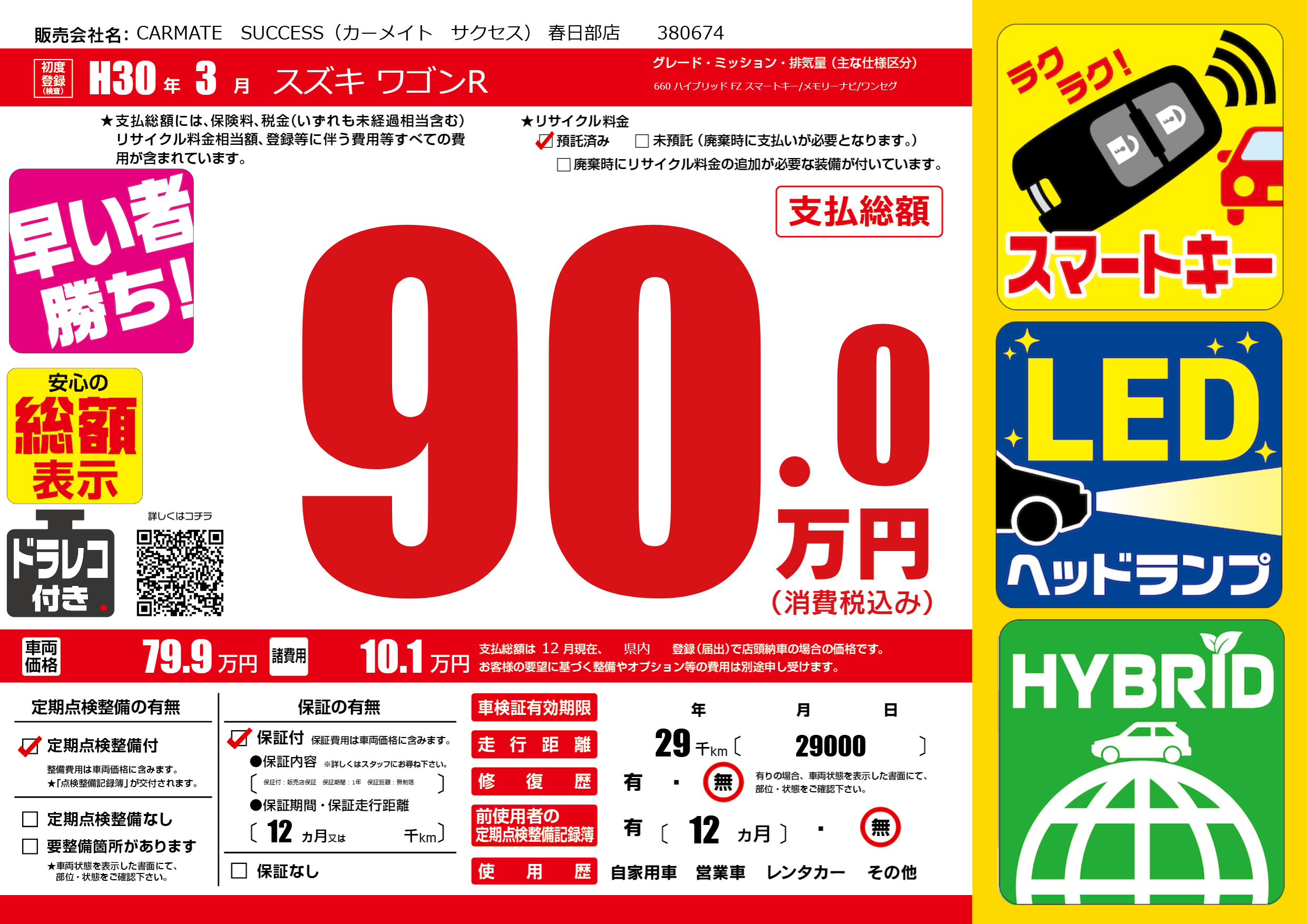 | 走行キロ | 2.9万km | 初年度登録 | H30年3月 |