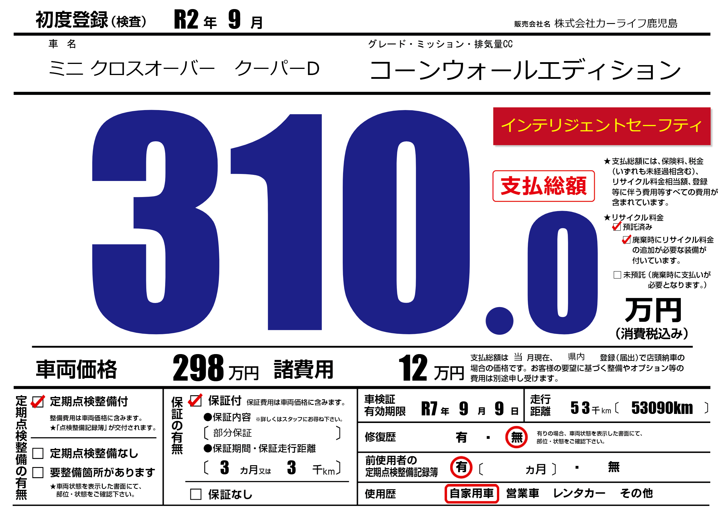| 定期点検整備 | 定期点検整備あり | ||