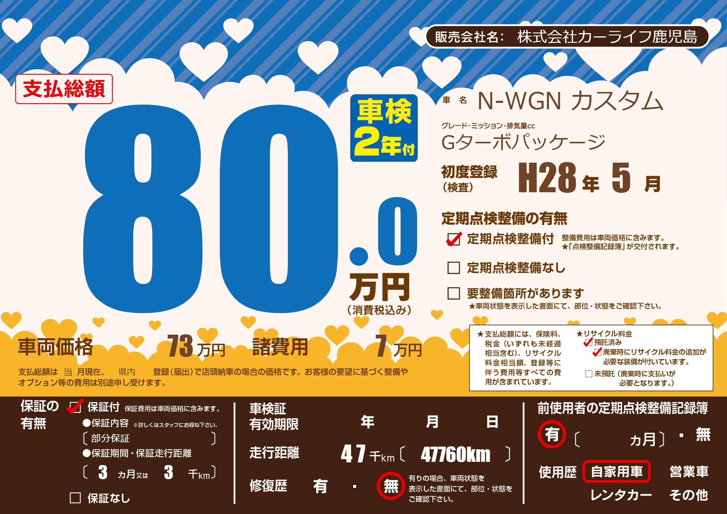 | 車名 | N-WGN カスタム | グレード ミッション 排気量 |