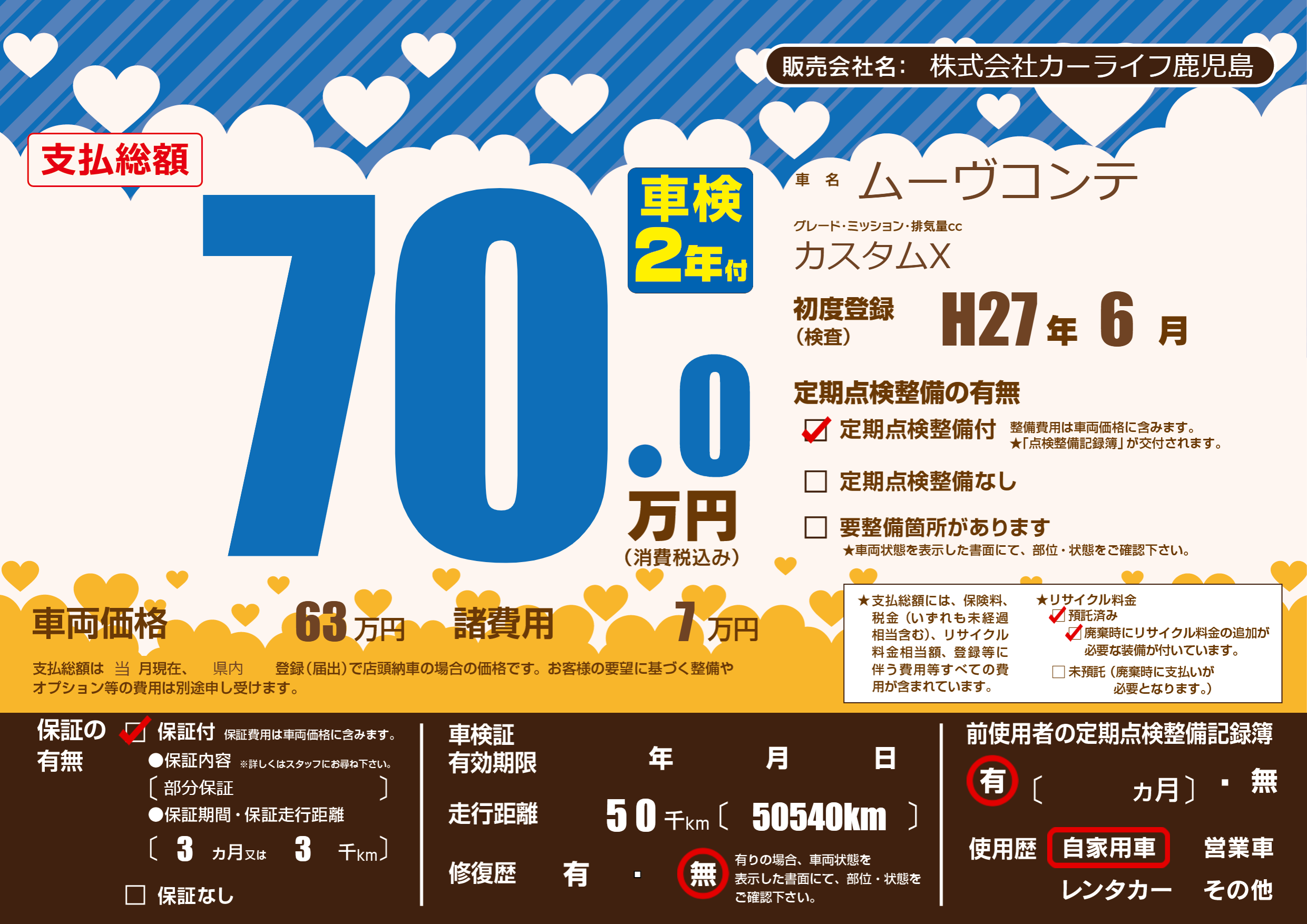 | 車名 | ムーヴコンテ | グレード ミッション 排気量 |