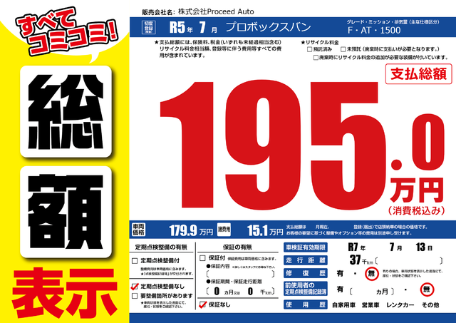 | 車検制限 | 7年 9月 20日 | ||