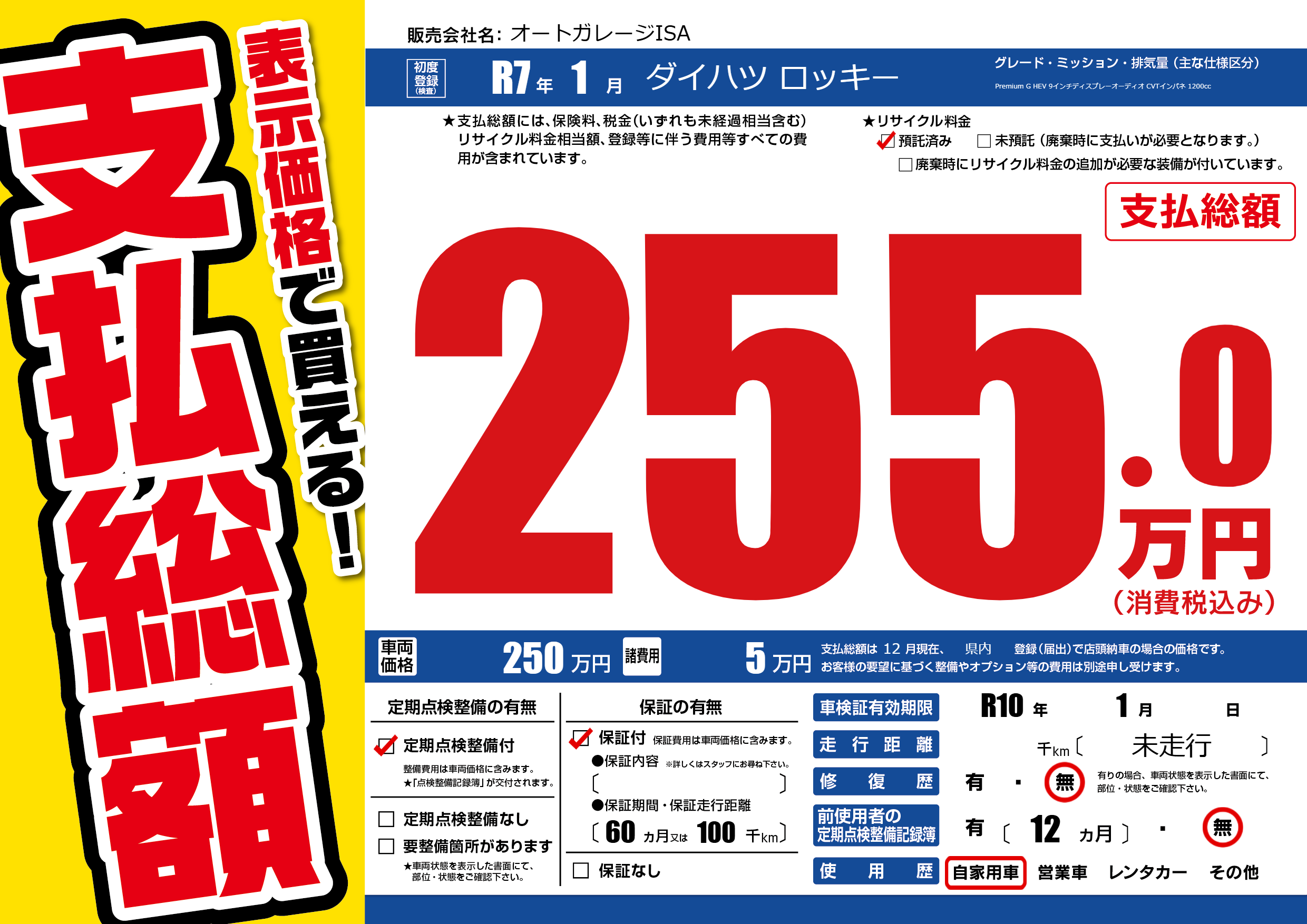 | 車検制限 | R10年 1月 - 日 | ||
