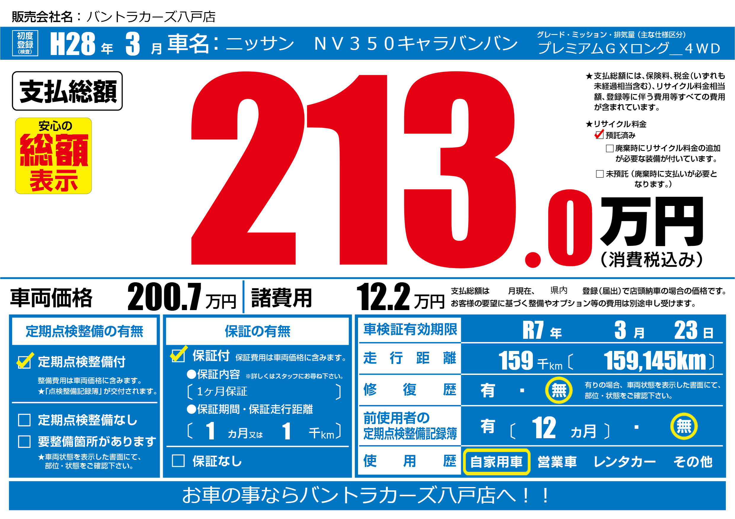 | 車検制限 | R7年 3月 23日 | ||