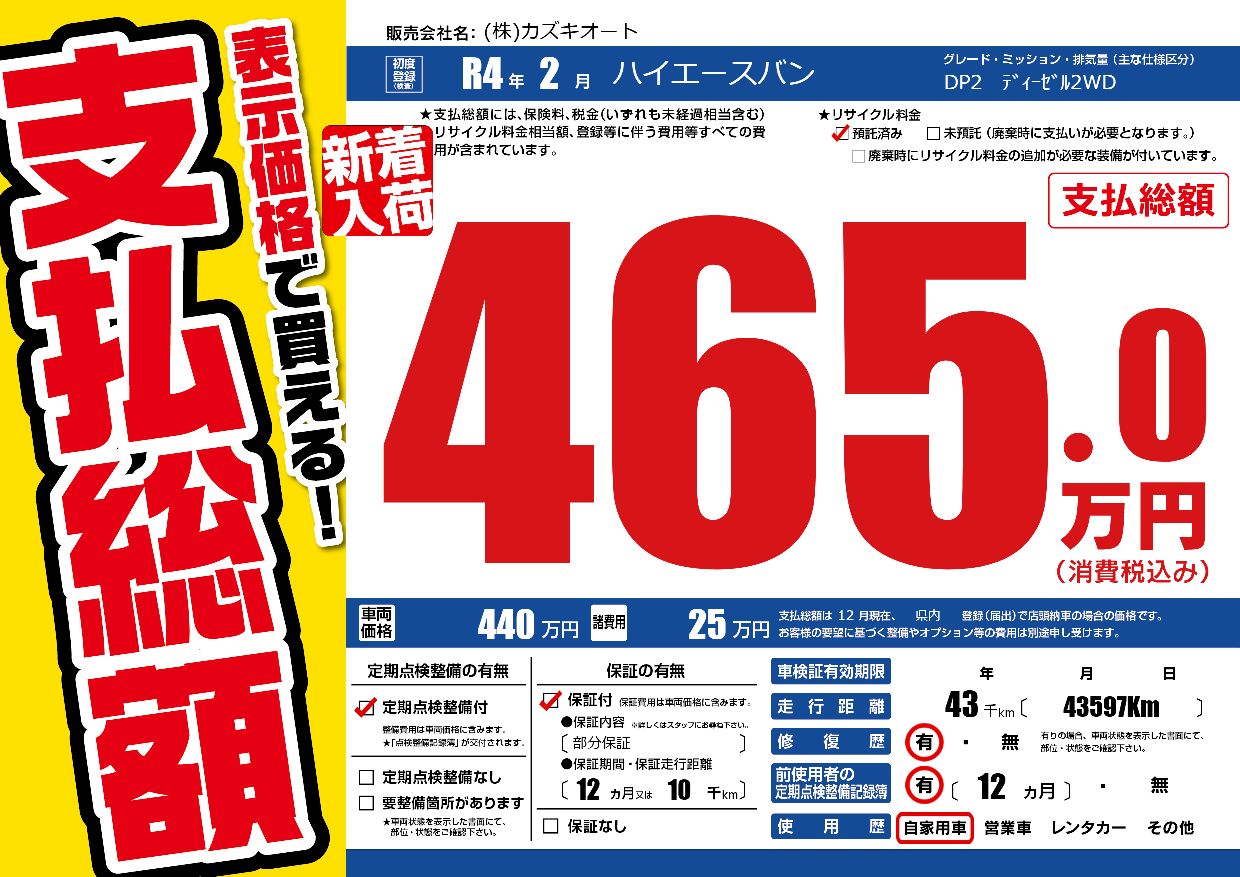 | 走行キロ | 4.3万km | ||
