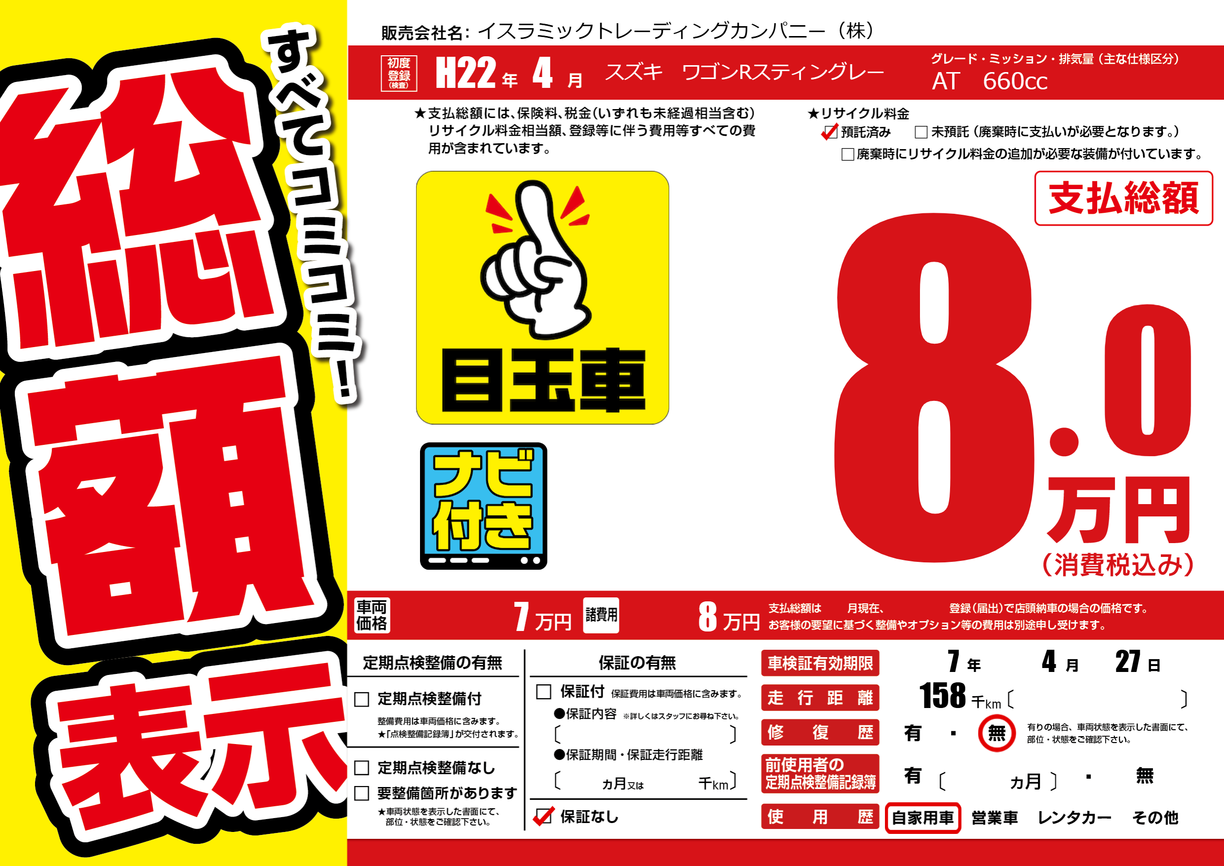 なし | 車検制限 | 7年4月27月 |