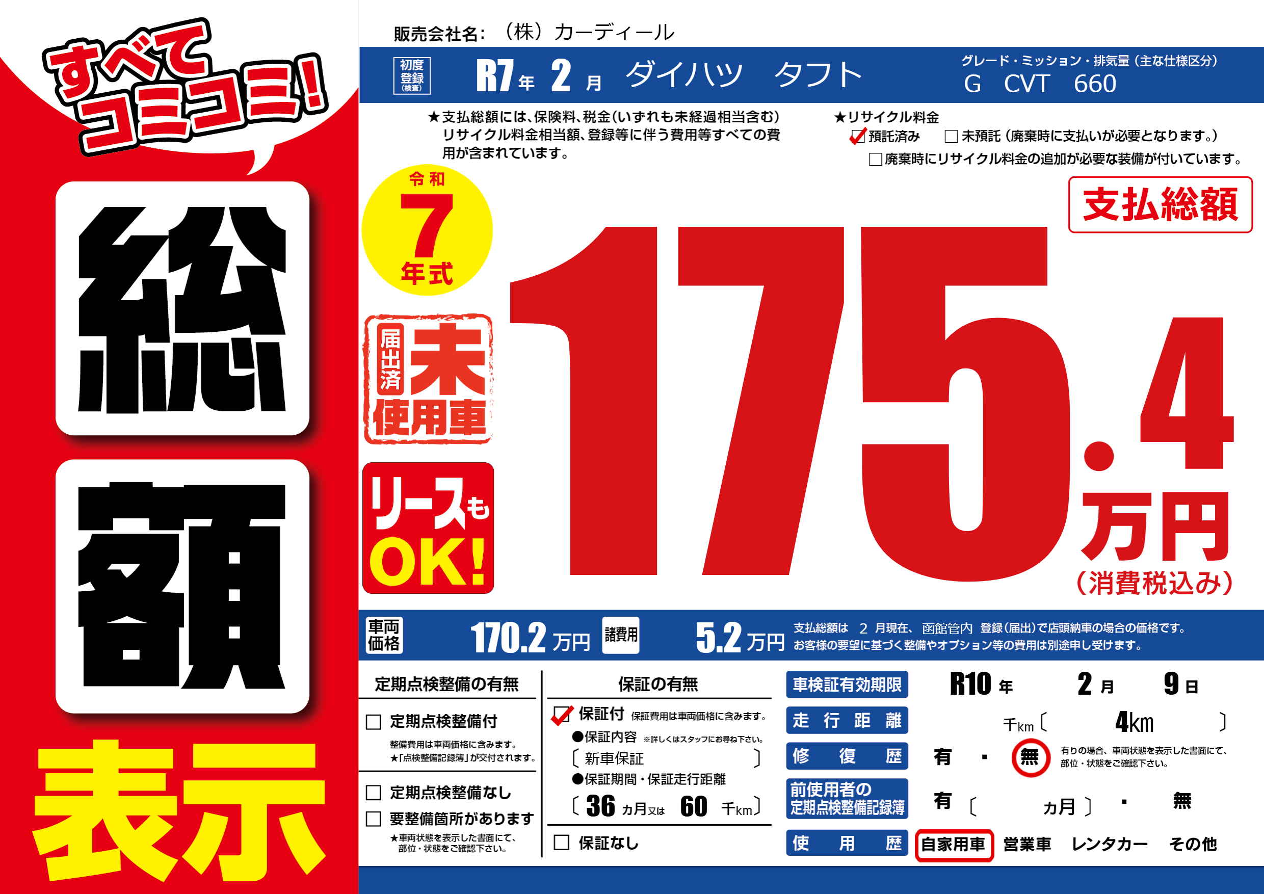 | 走行キロ | - | 初年度登録 | R7年2月 |