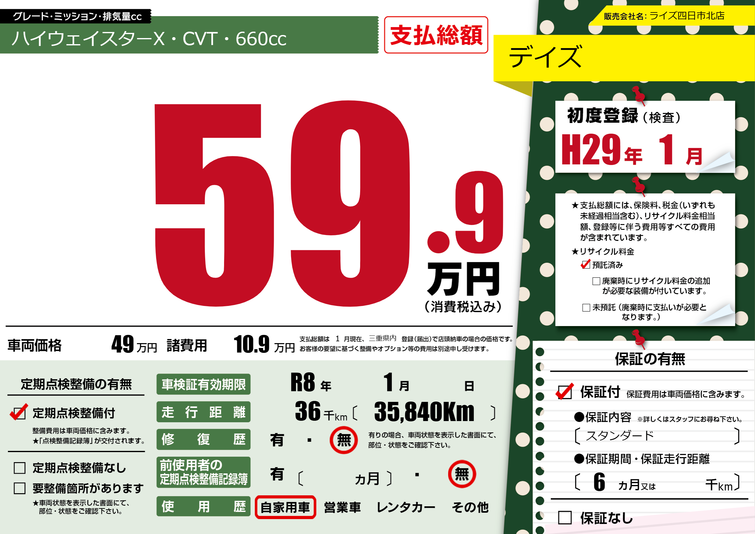 なし | 車検制限 | R8年1月---月 |