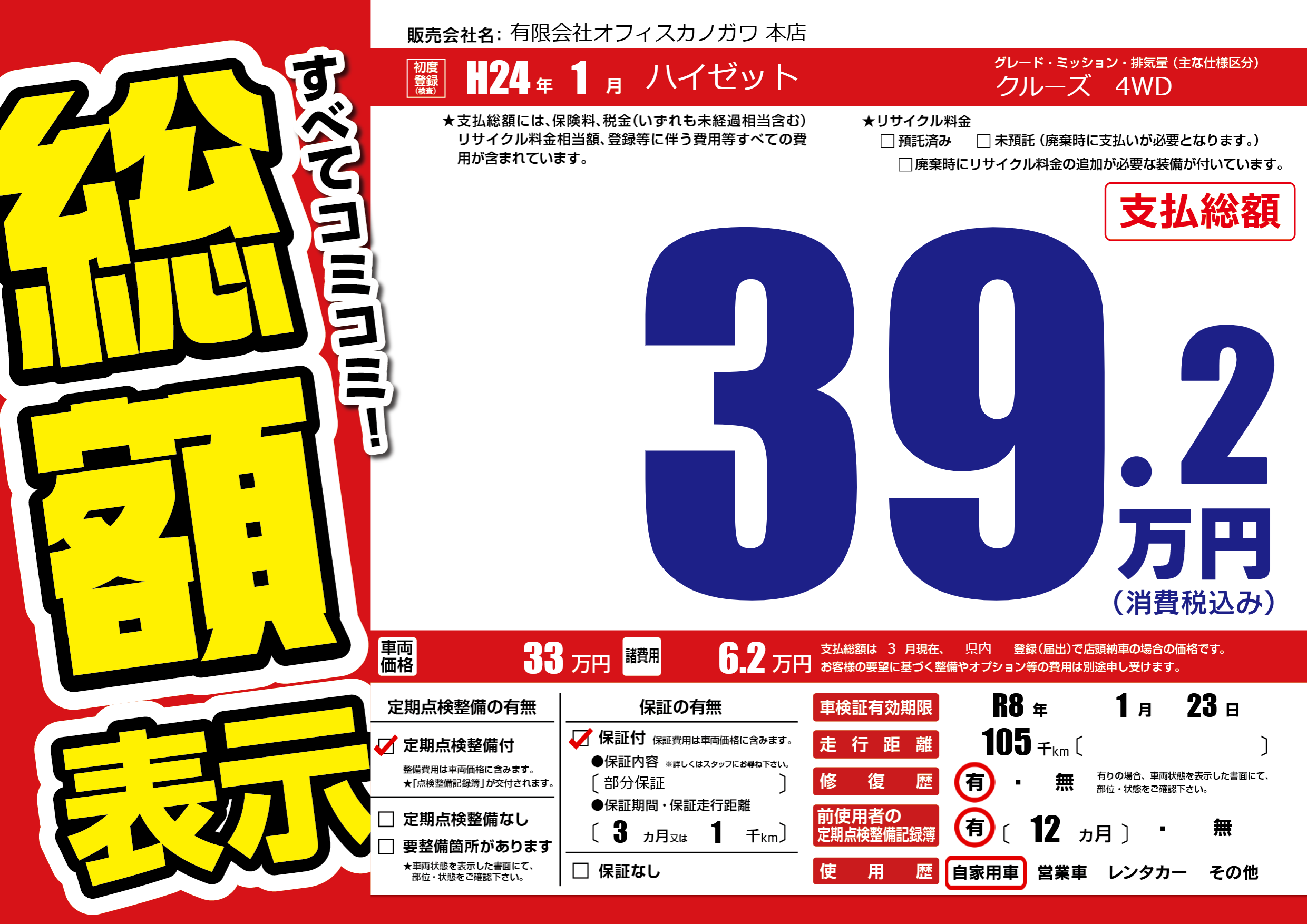 なし | 車検制限 | R8年1月23月 |