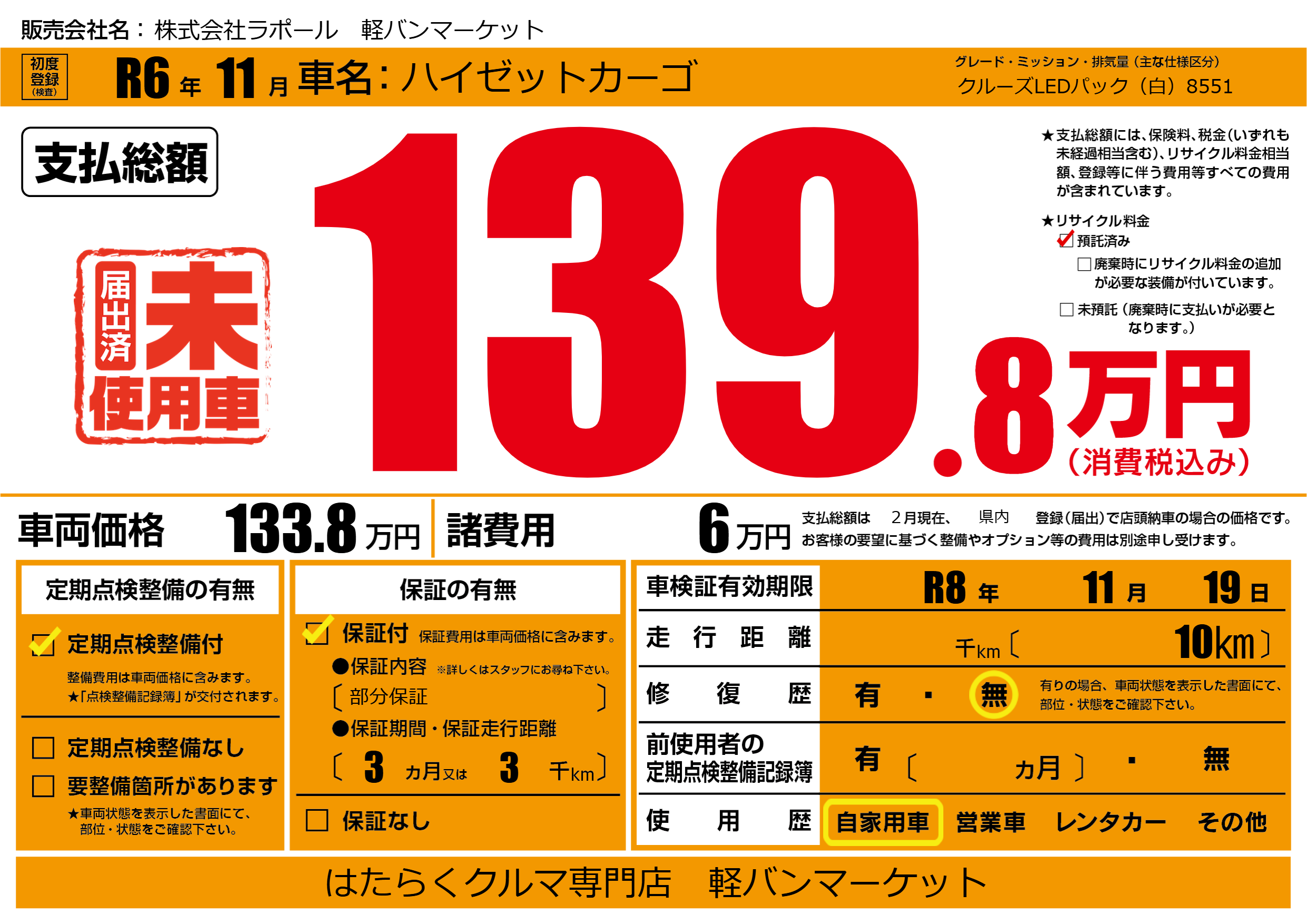 | 走行キロ | - | 初年度登録 | R6年11月 |