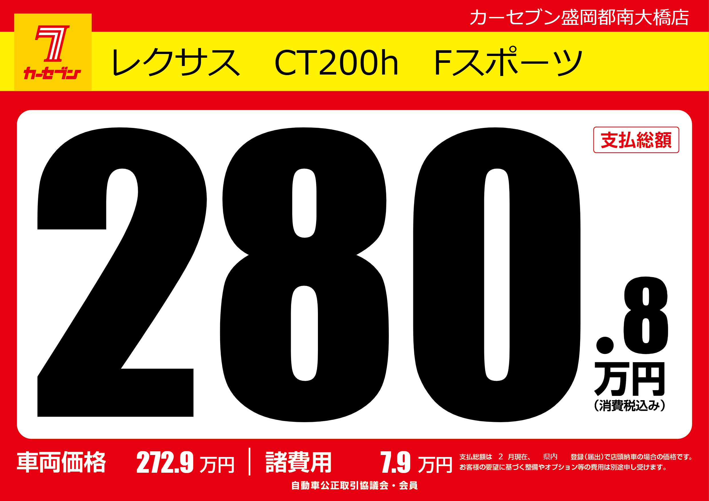 | 車名 | レクサス CT200h Fスポーツ | グレード ミッション 排気量 |