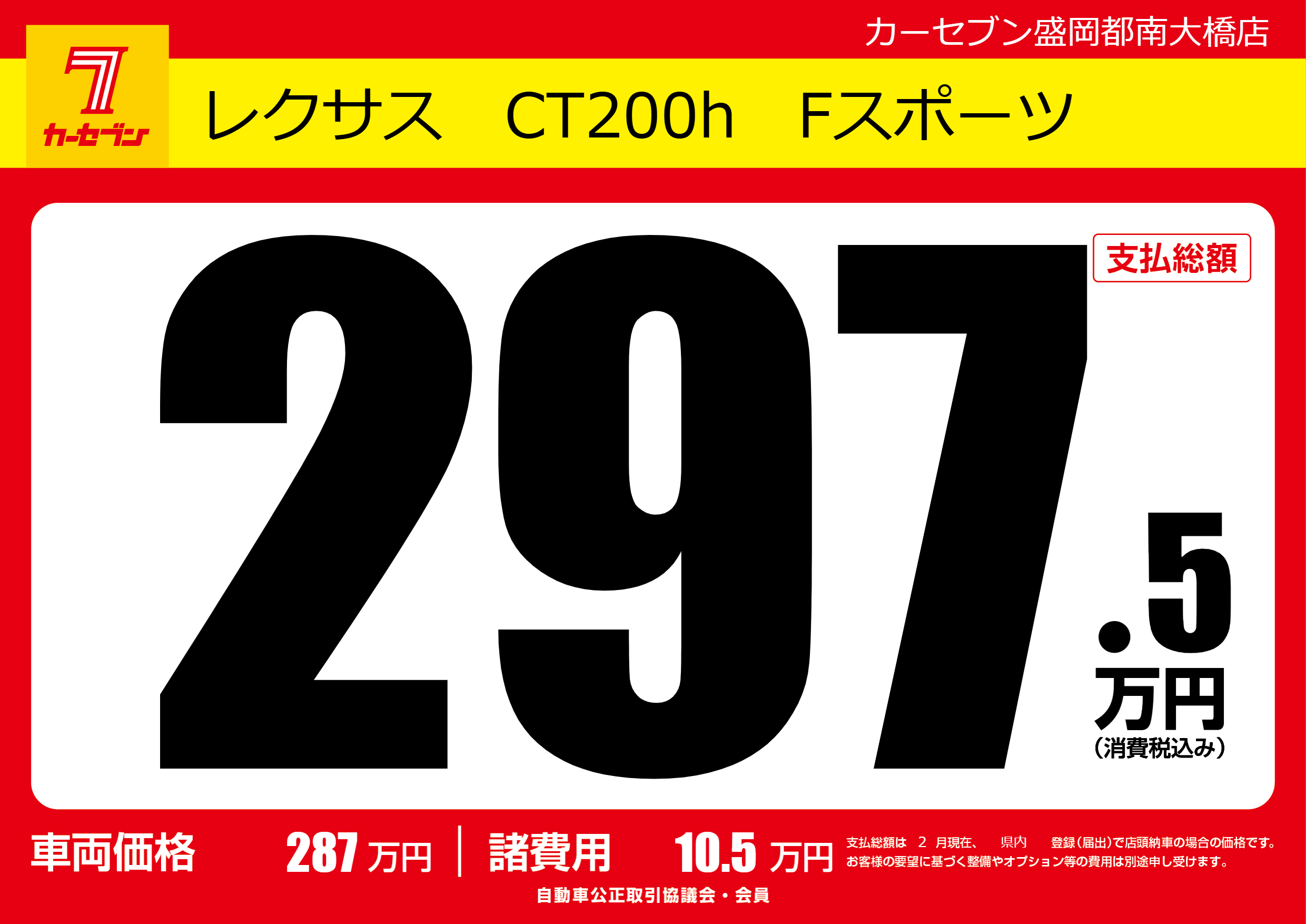 | 車名 | レクサス CT200h Fスポーツ | グレード ミッション 排気量 |