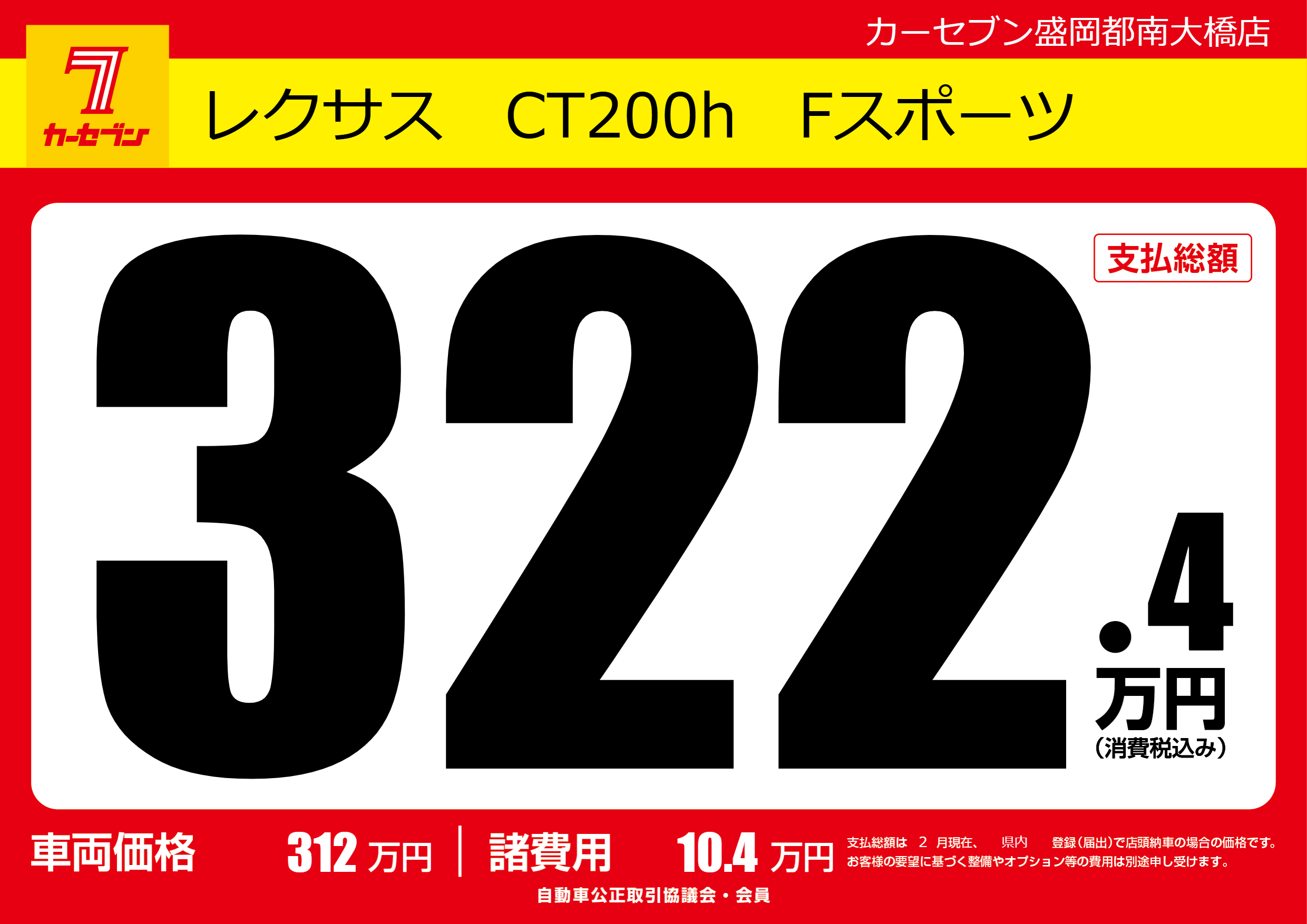 | 車名 | レクサス CT200h Fスポーツ | グレード ミッション 排気量 |