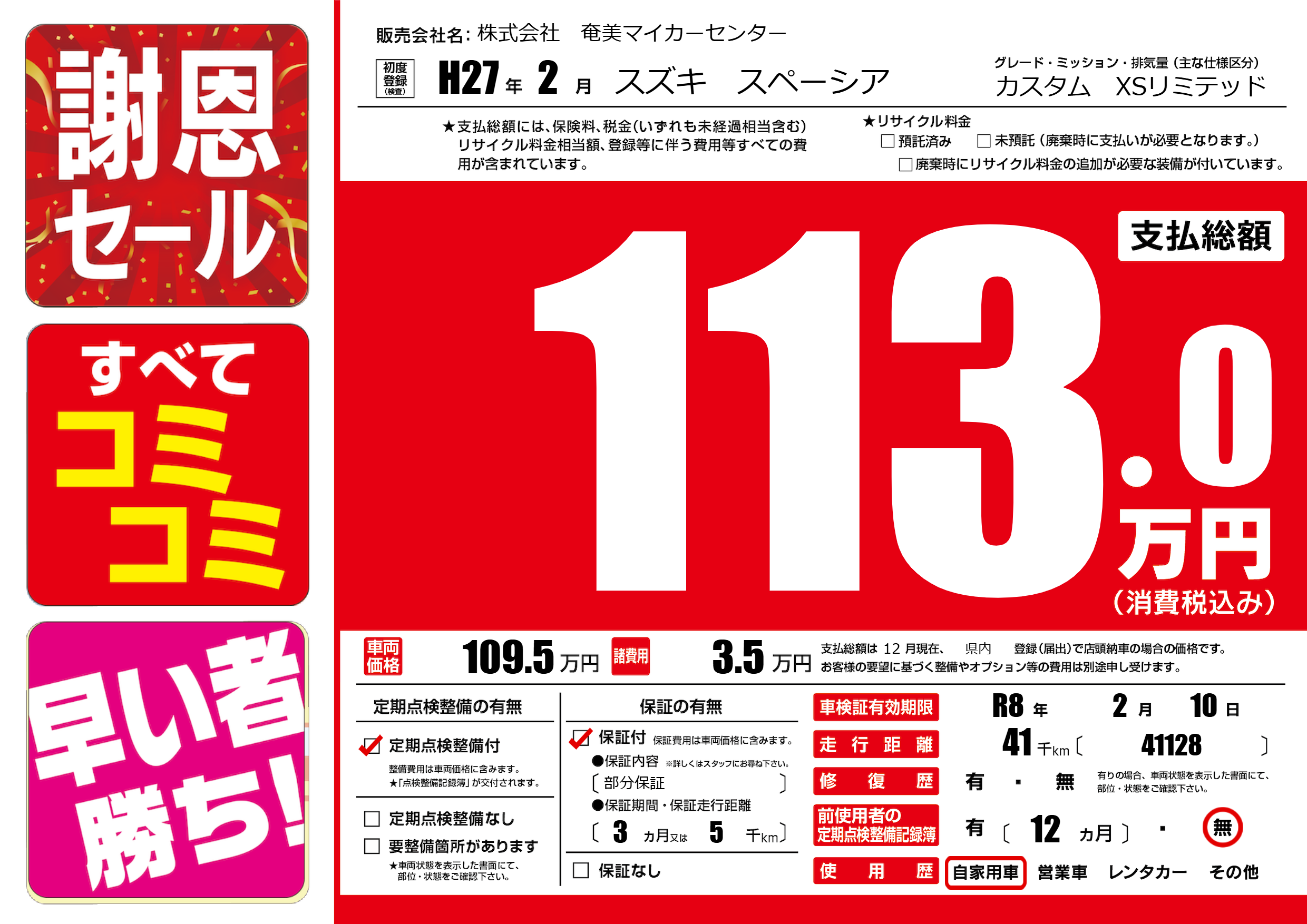 | 車検制限 | R8年 2月 10日 | ||