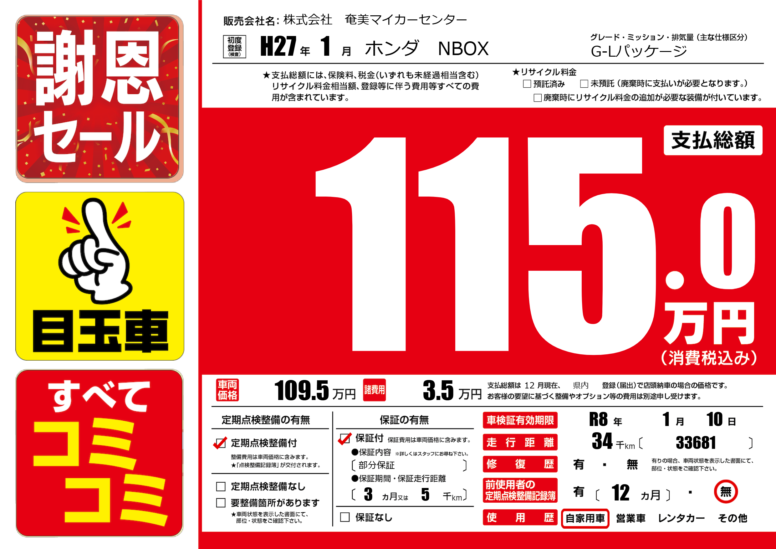 なし | 車検制限 | R8年1月10月 |