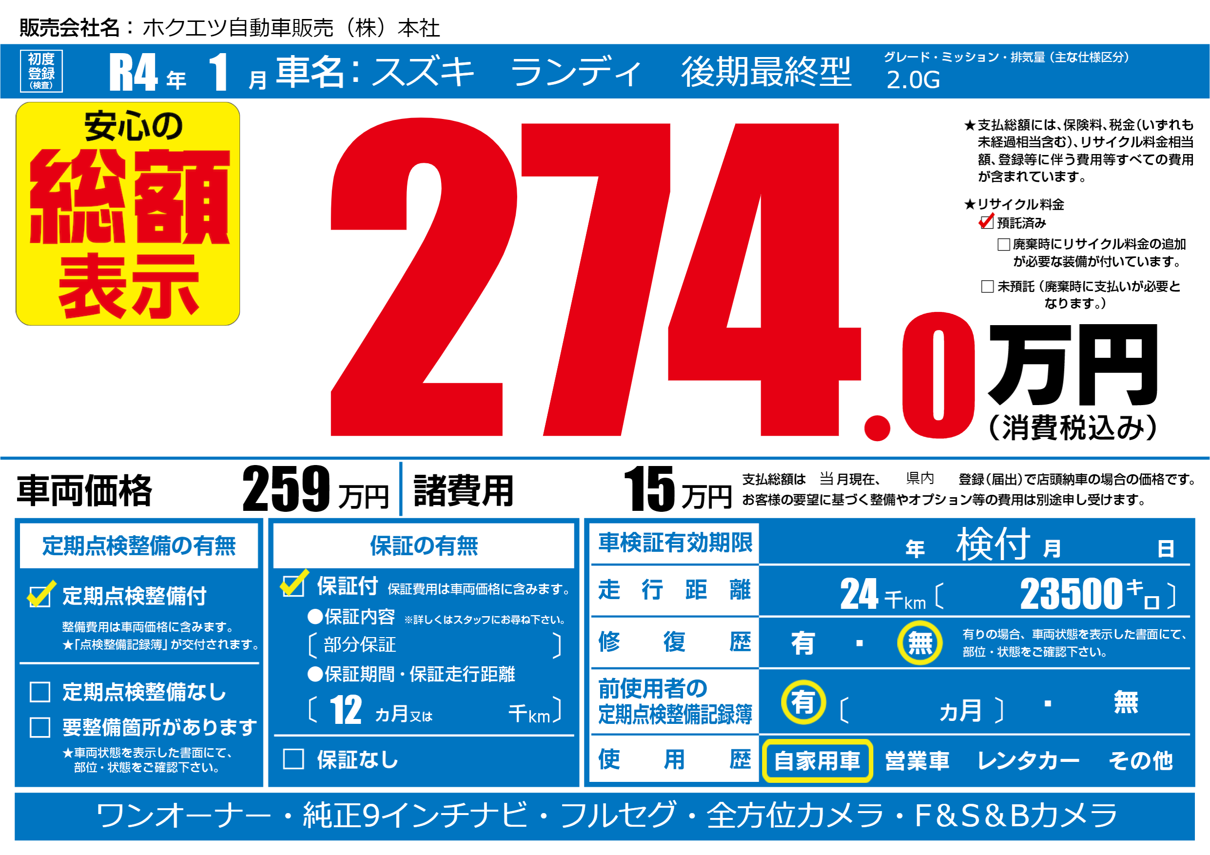 | 走行キロ | 2.4万km | 初年度登録 | R4年1月 |