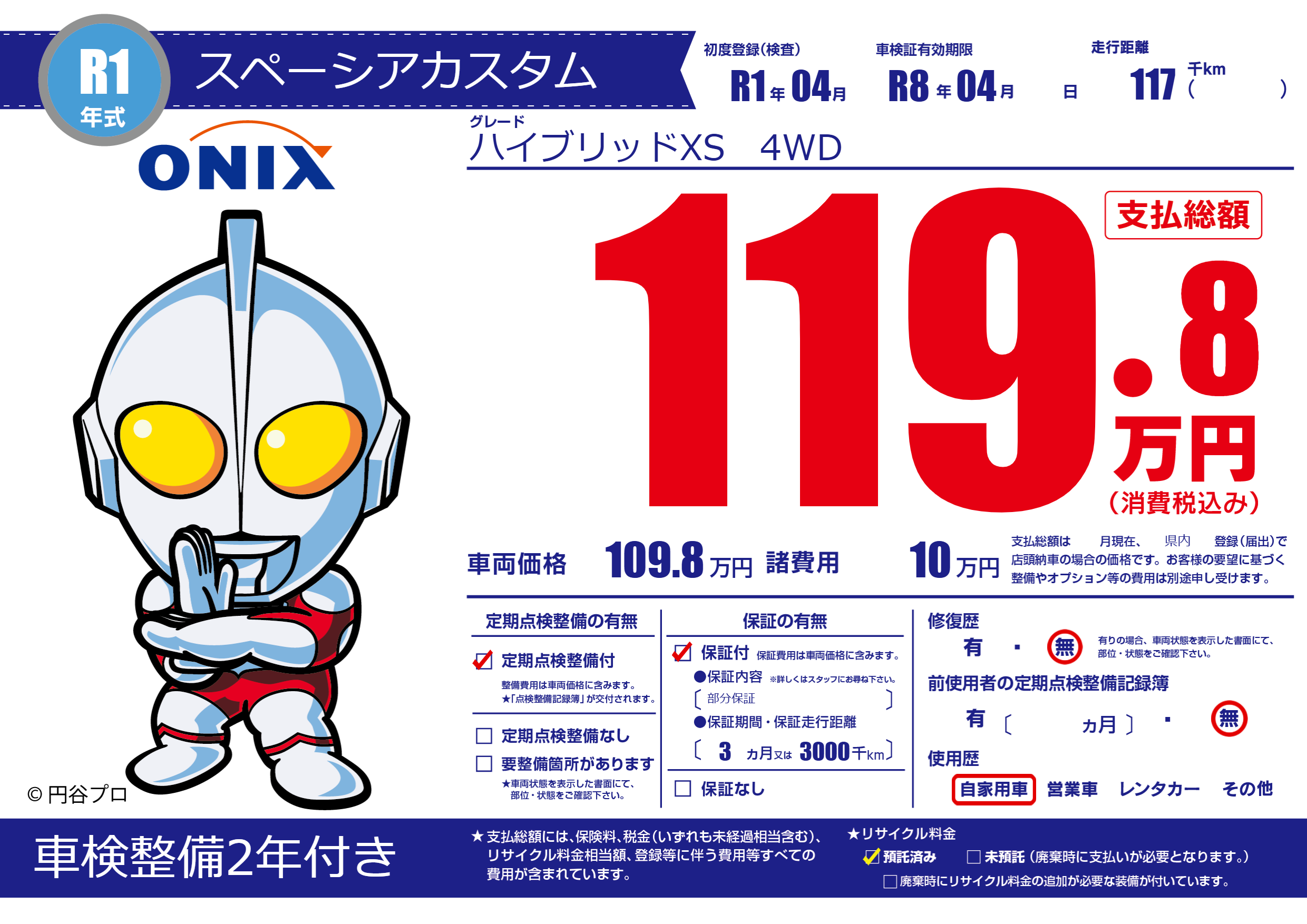 | 車名 | スペーシアカスタム | グレード ミッション 排気量 |