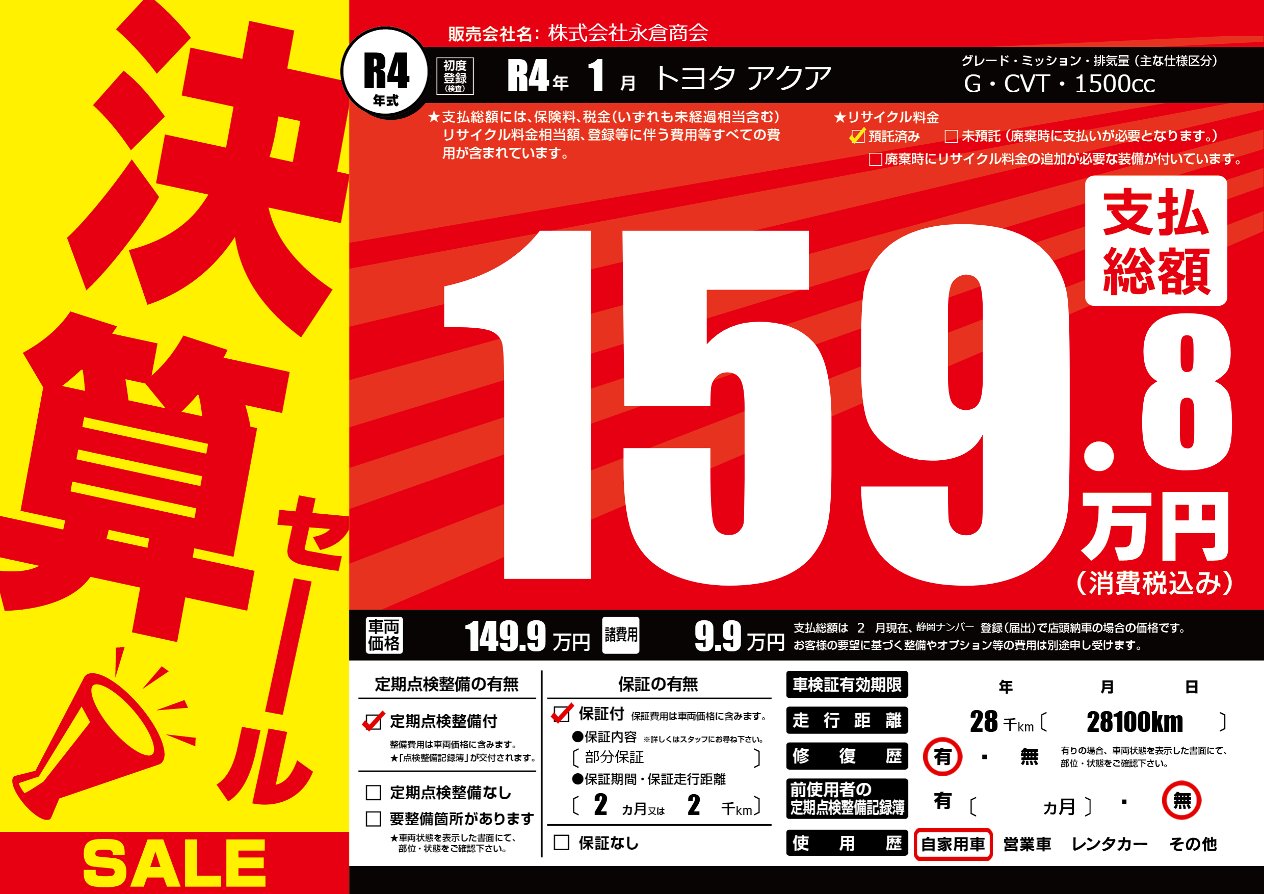| 走行キロ | 2.8万km | 初年度登録 | R4年1月 |