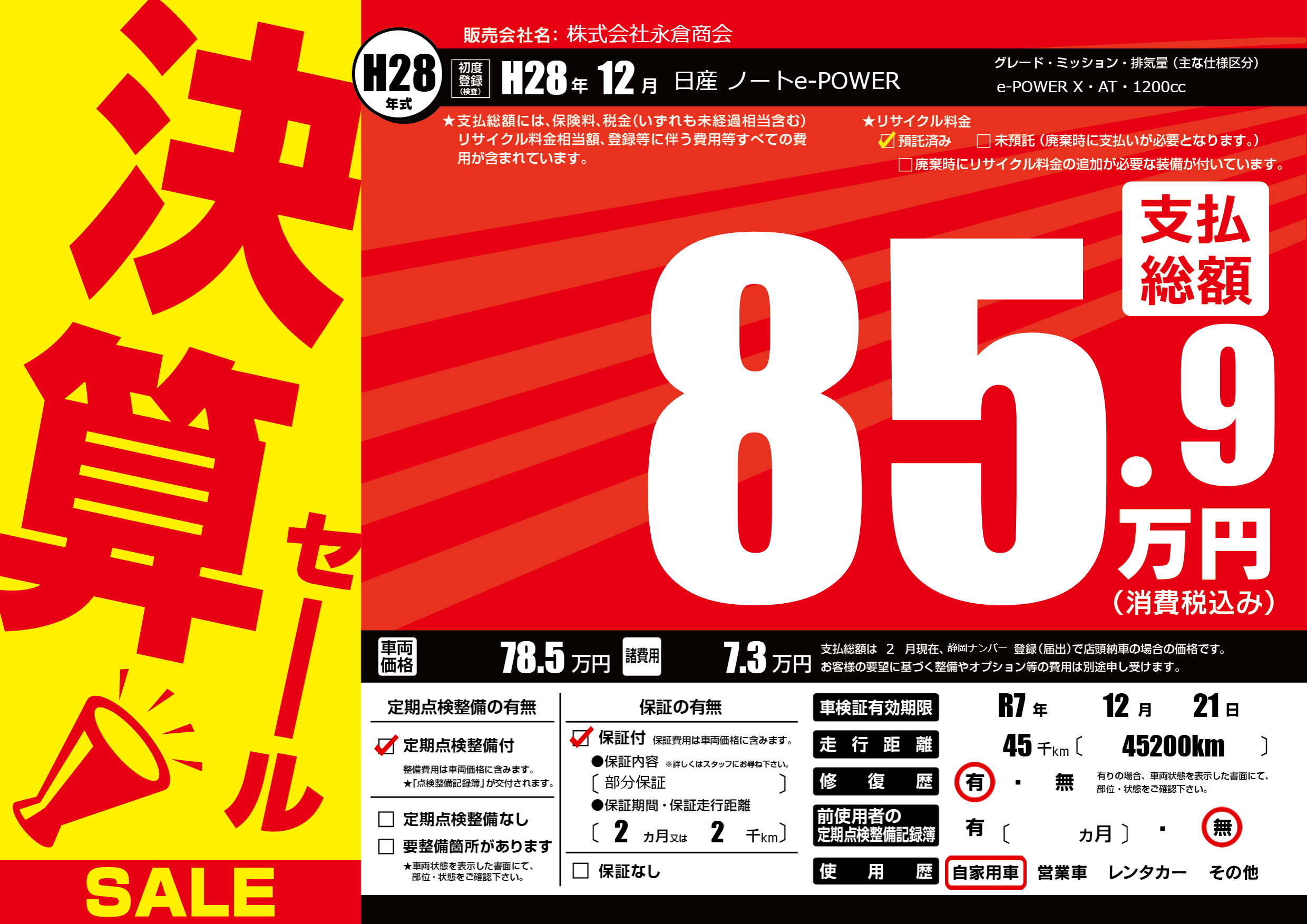 なし | 車検制限 | R7年12月21月 |