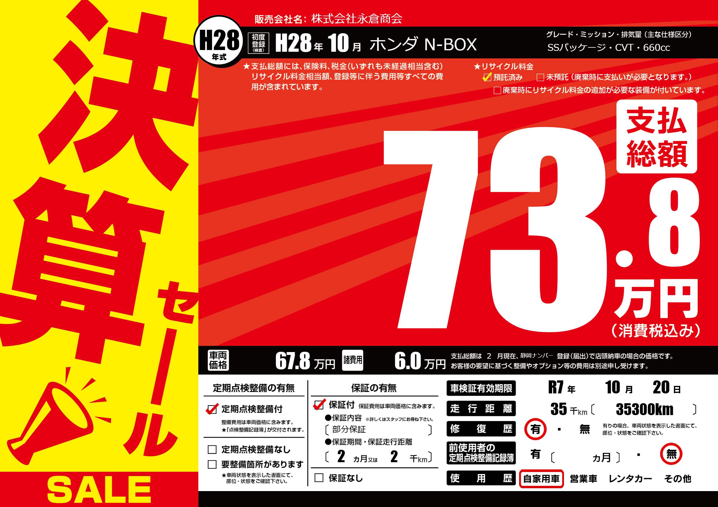 | 車検制限 | R7年 10月 20日 | ||