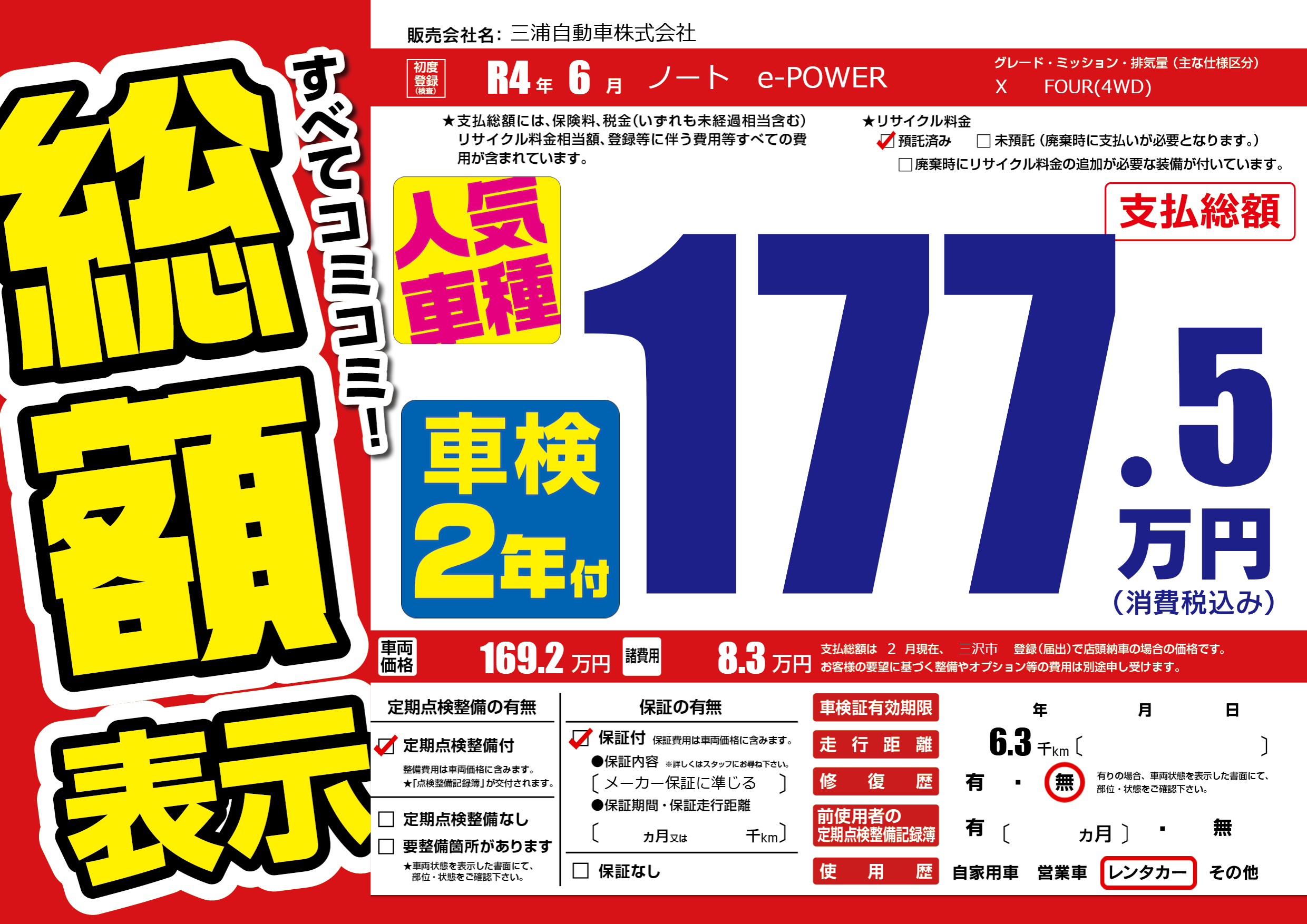 保証付き 保証内容(メーカー保証に準じる) ヶ月または千km |