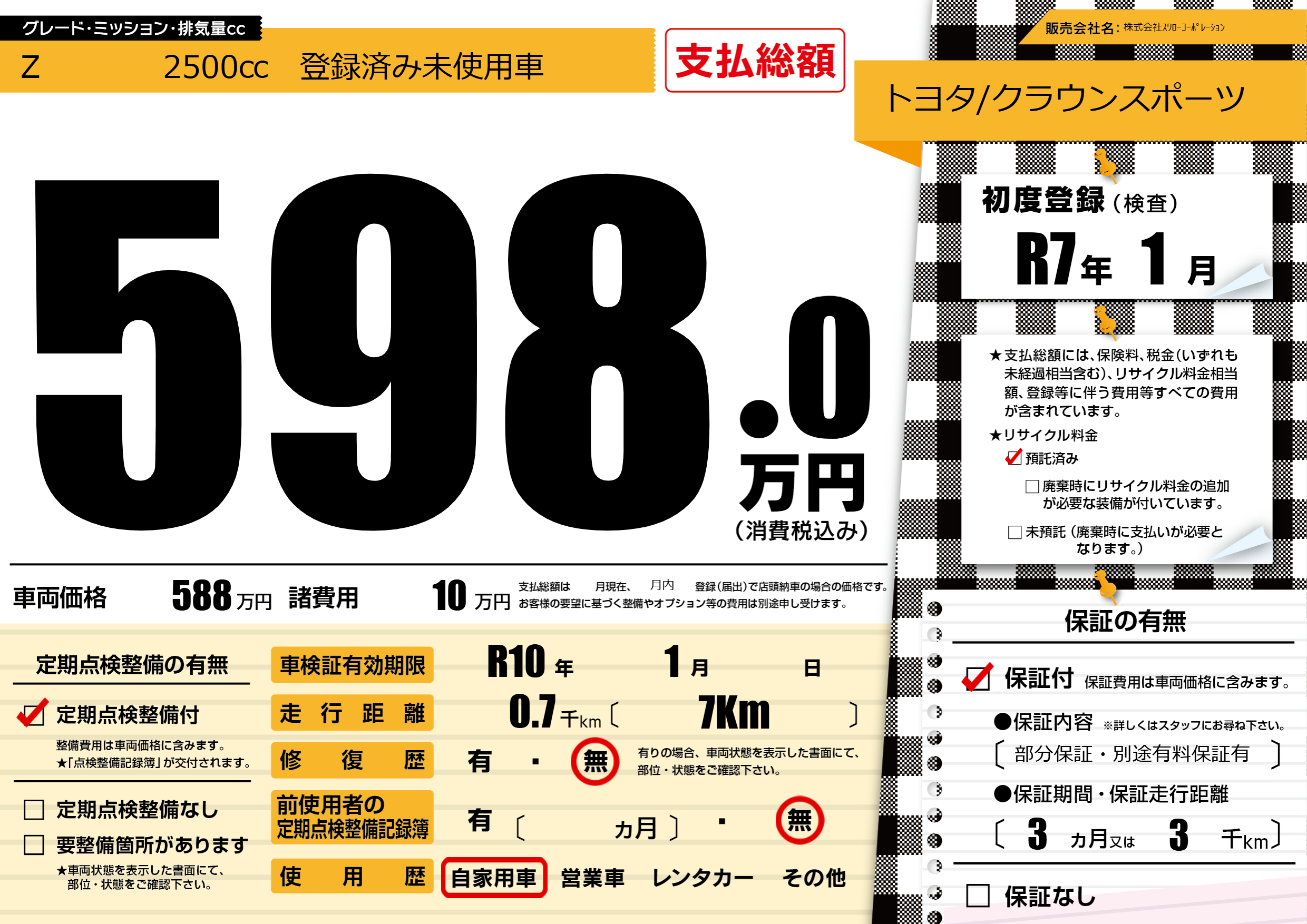 Z 2500㏄ 登録済み未使用車 |
