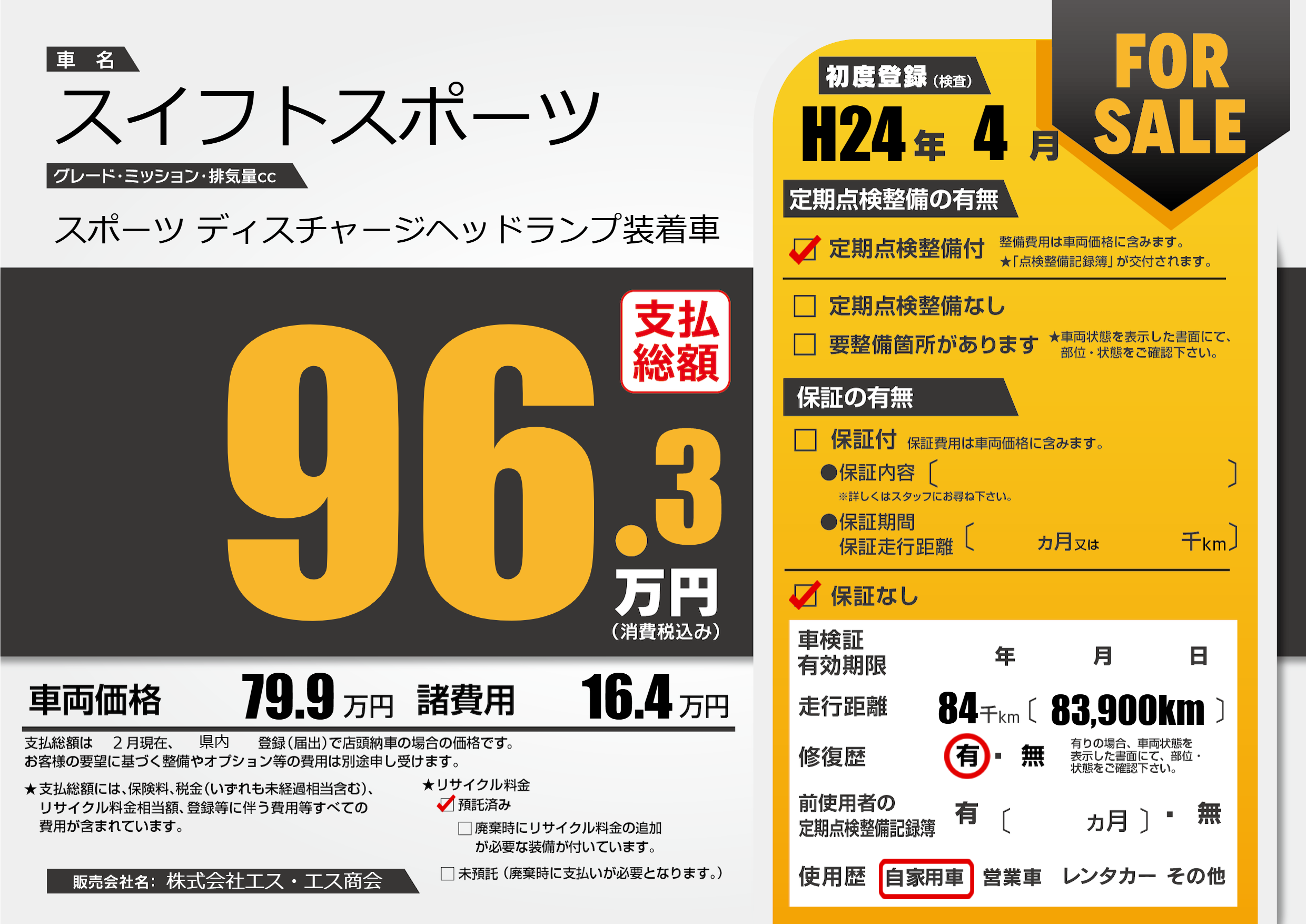 | 定期点検整備 | 定期点検整備あり | ||