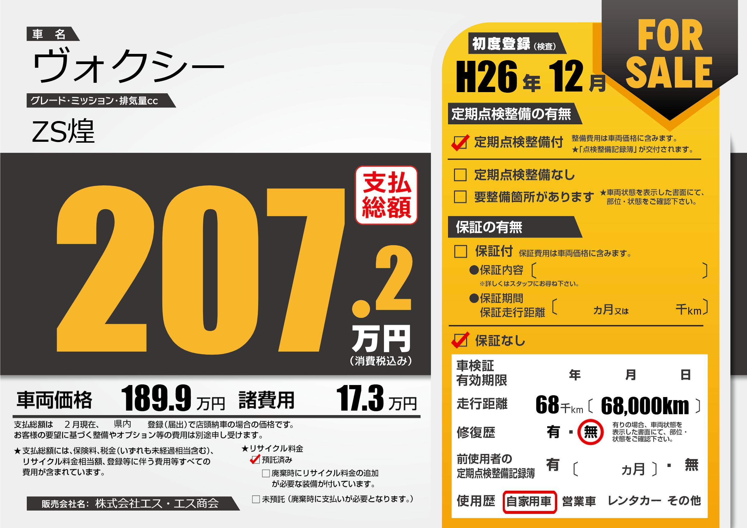 | 走行キロ | 6.8万km | 初年度登録 | H26年12月 |