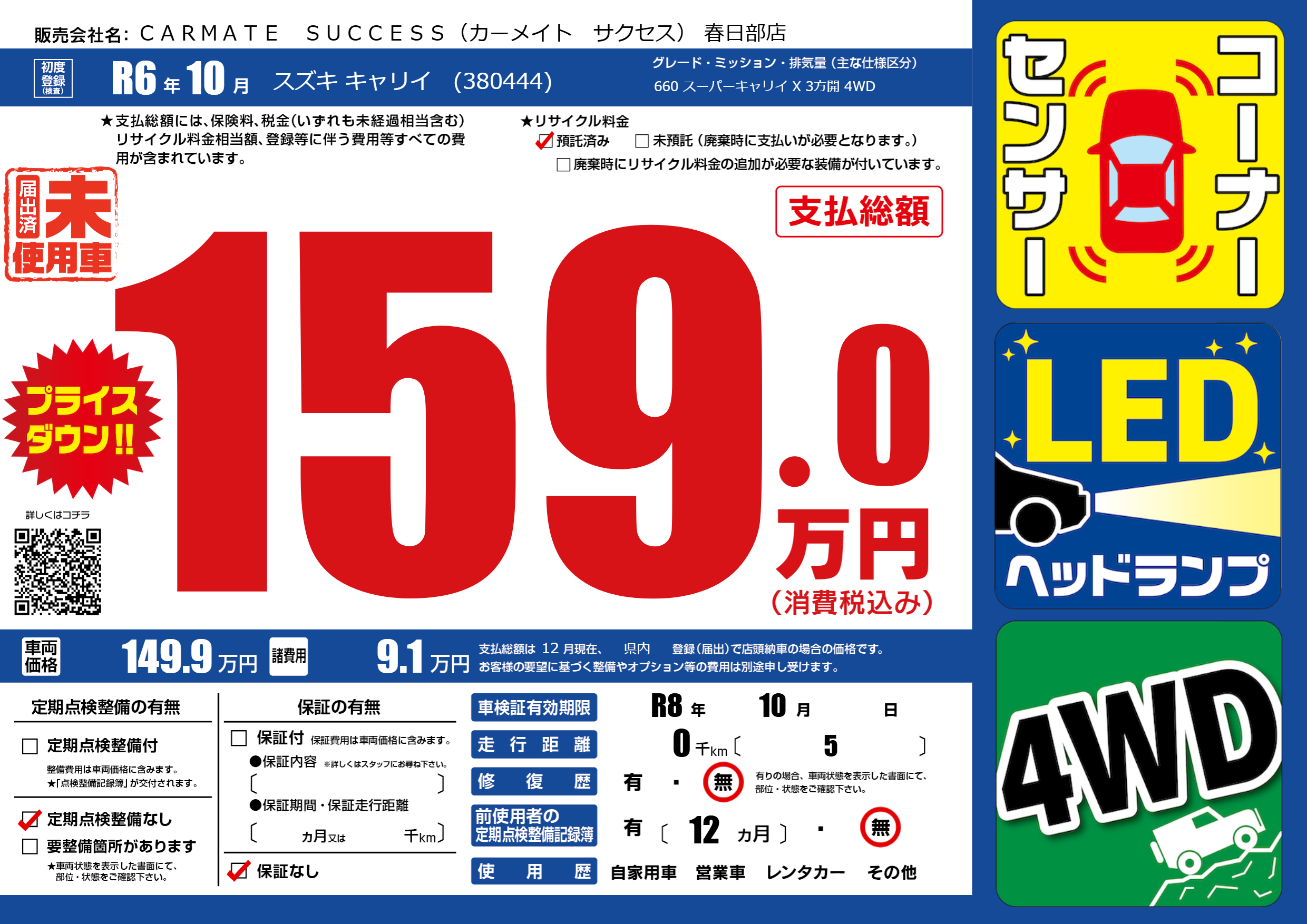 | 走行キロ | - | 初年度登録 | R6年10月 |