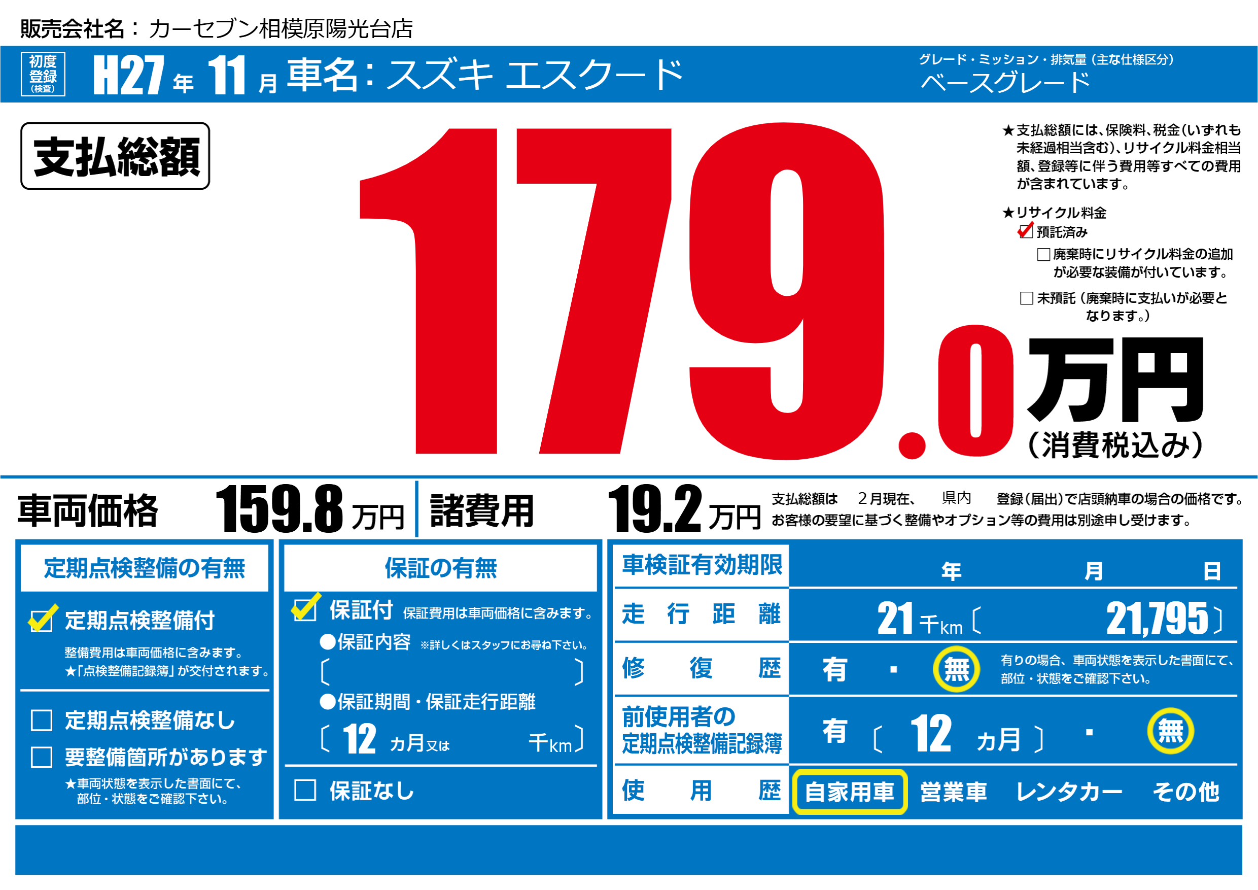| 定期点検整備 | 定期点検整備あり | ||