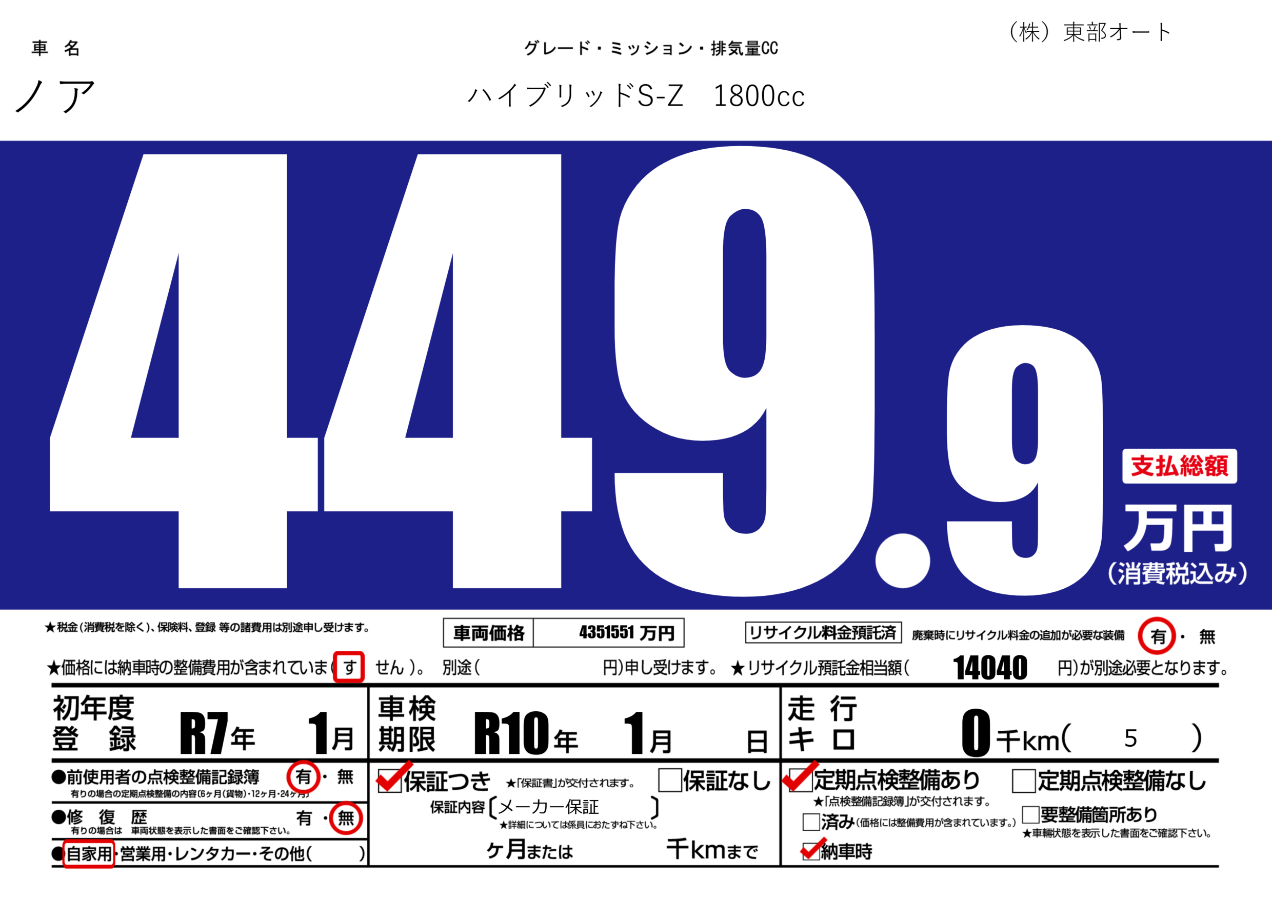 | 定期点検整備 | 定期点検整備あり 納車時あり | ||
