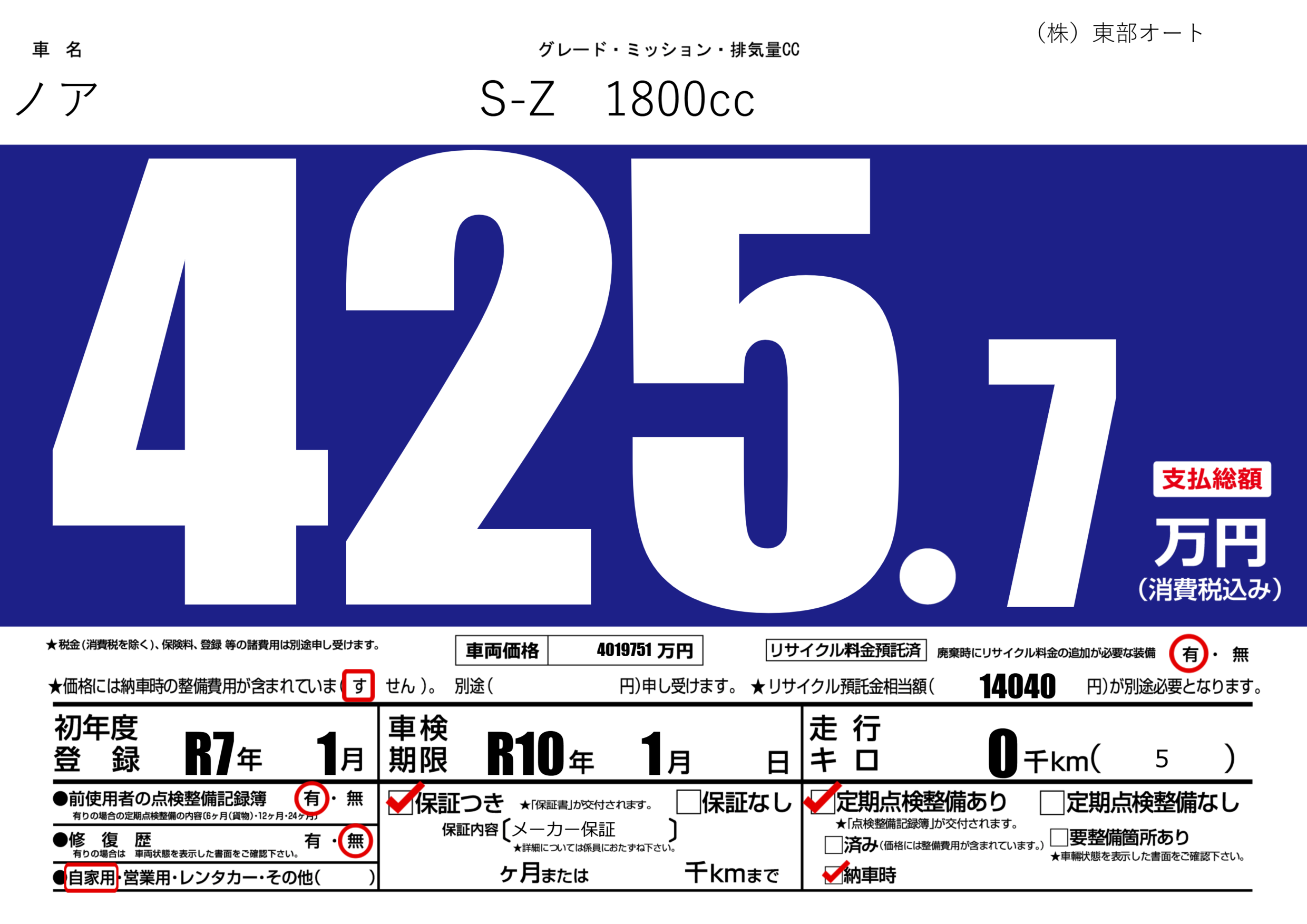 | 定期点検整備 | 定期点検整備あり 納車時あり | ||