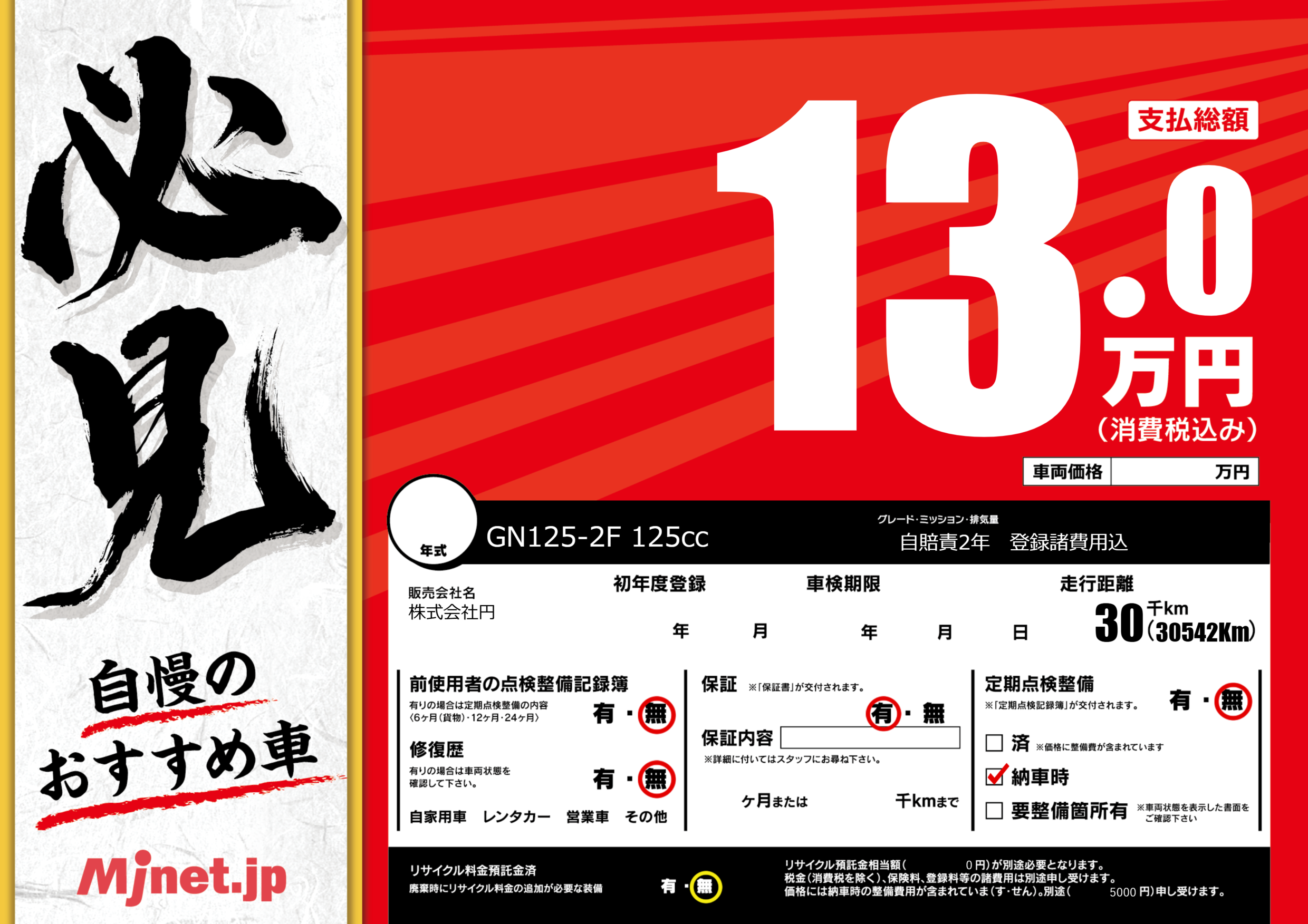 | 車名 | GN125-2F 125cc | グレード ミッション 排気量 |