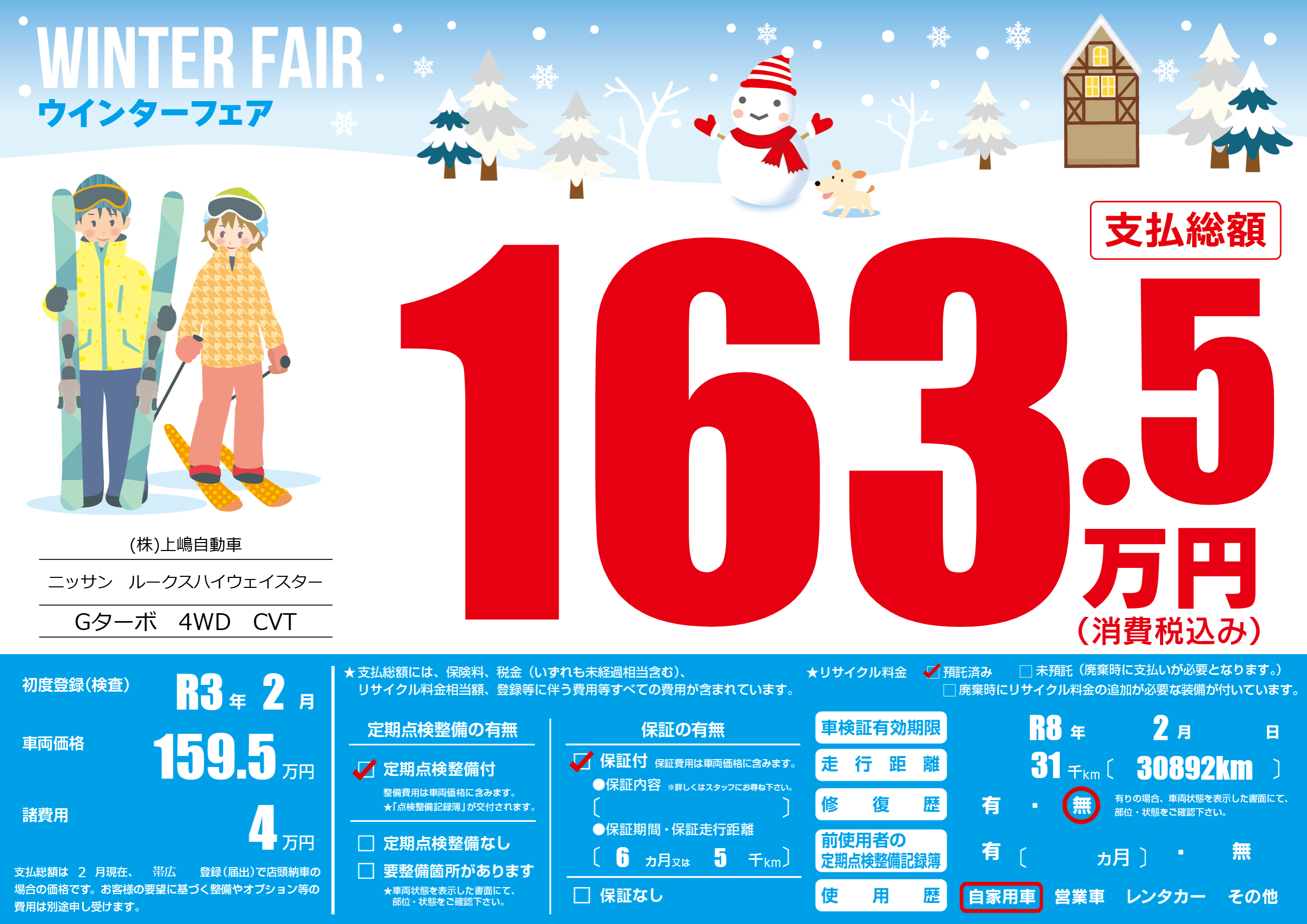 | 走行キロ | 3.1万km | 初年度登録 | R3年2月 |