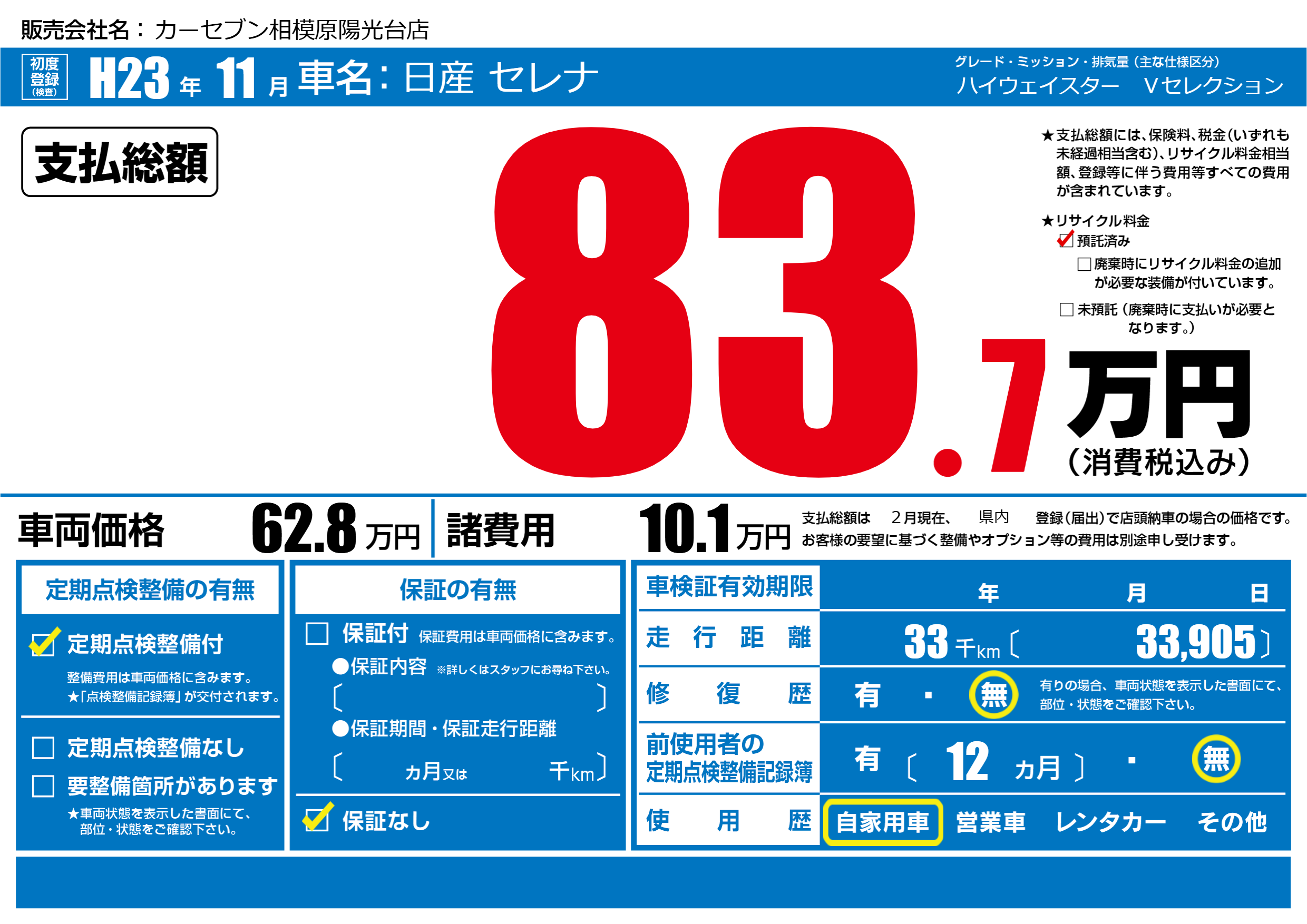 | 定期点検整備 | 定期点検整備あり | ||