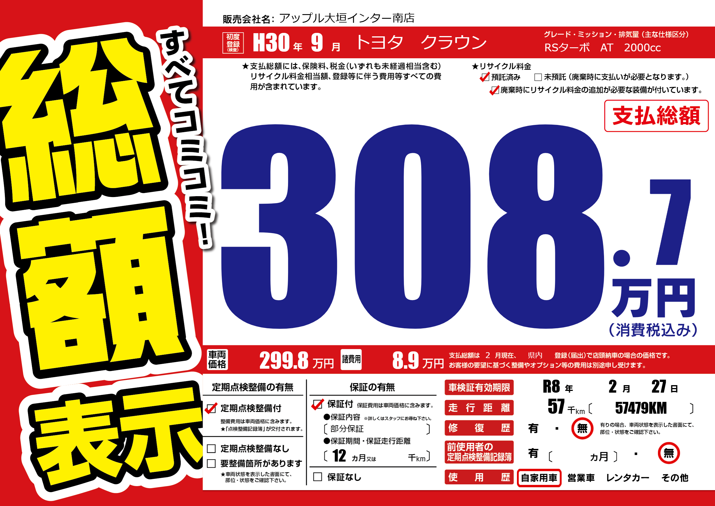 | 車名 | トヨタ クラウン | グレード ミッション 排気量 |