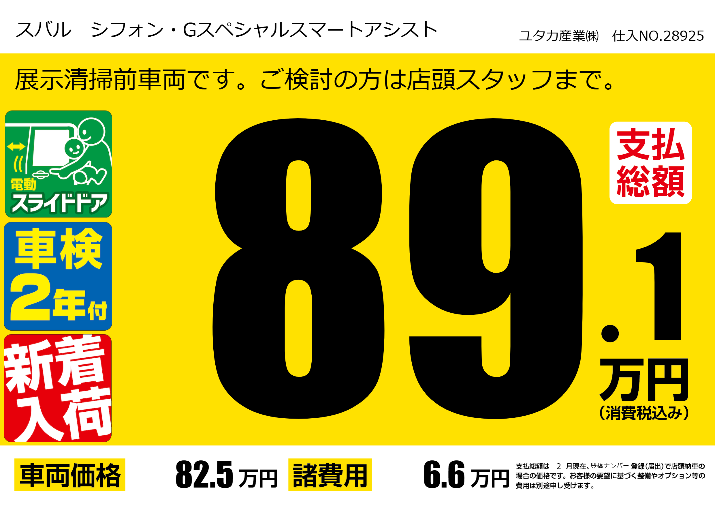 | 車名 | スバル シフォン・Gスペシャルスマートアシスト | グレード ミッション 排気量 |
