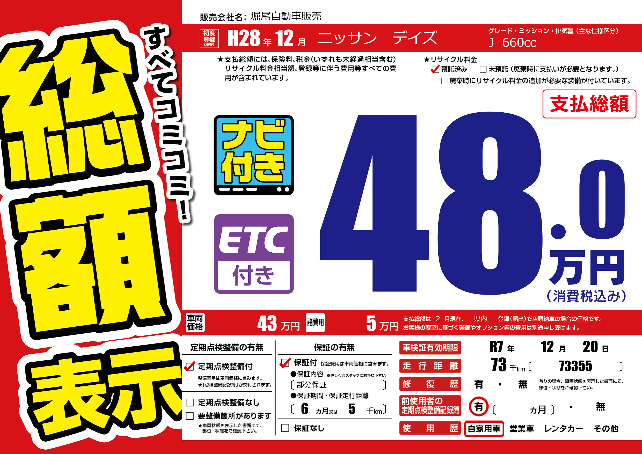 | 車名 | ニッサン デイズ | グレード ミッション 排気量 |
