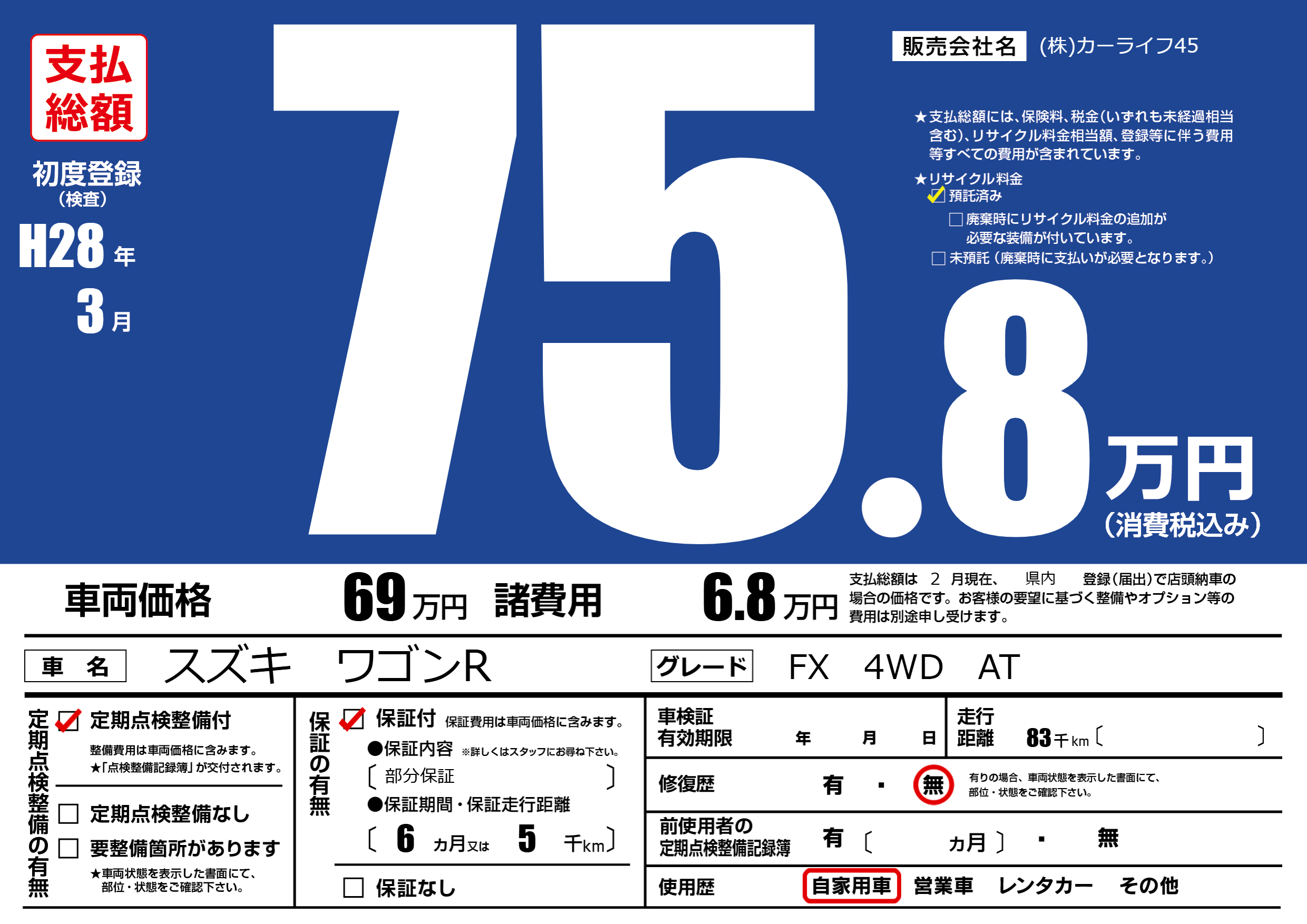 保証付き 保証内容(部分保証) 6ヶ月または(5)千kmまで |