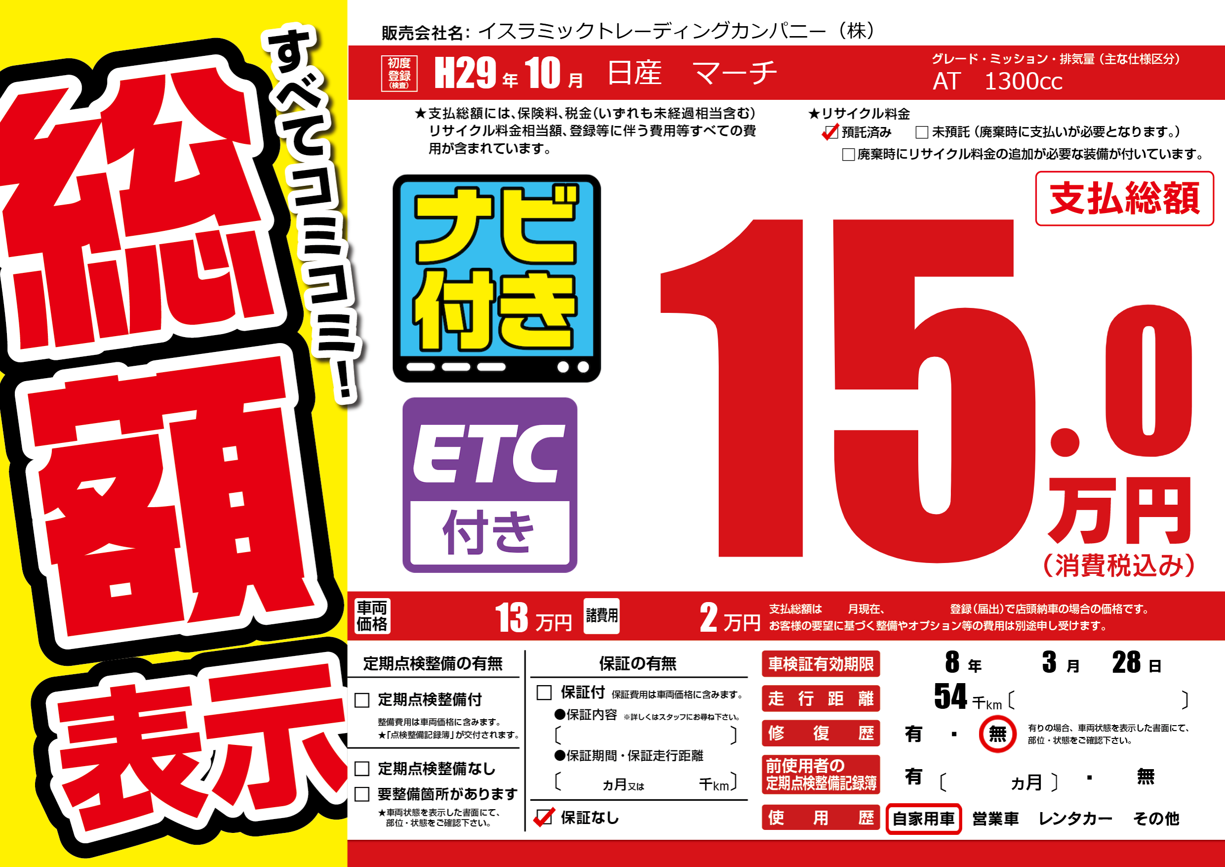 なし | 車検制限 | 8年3月28月 |